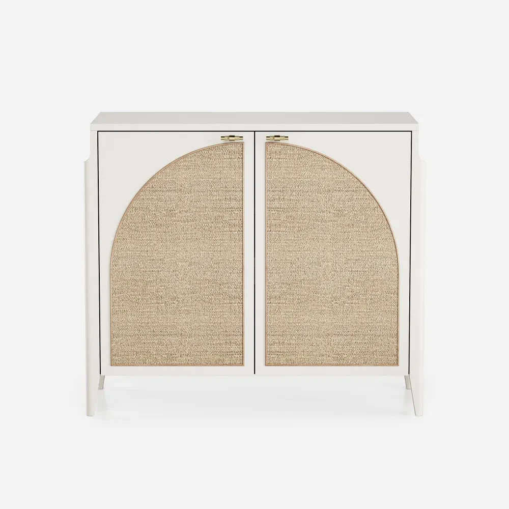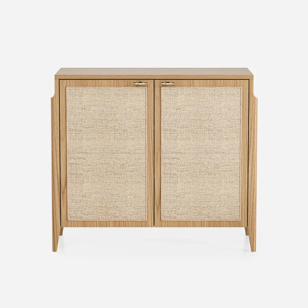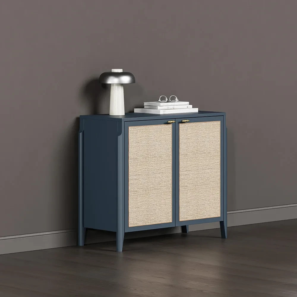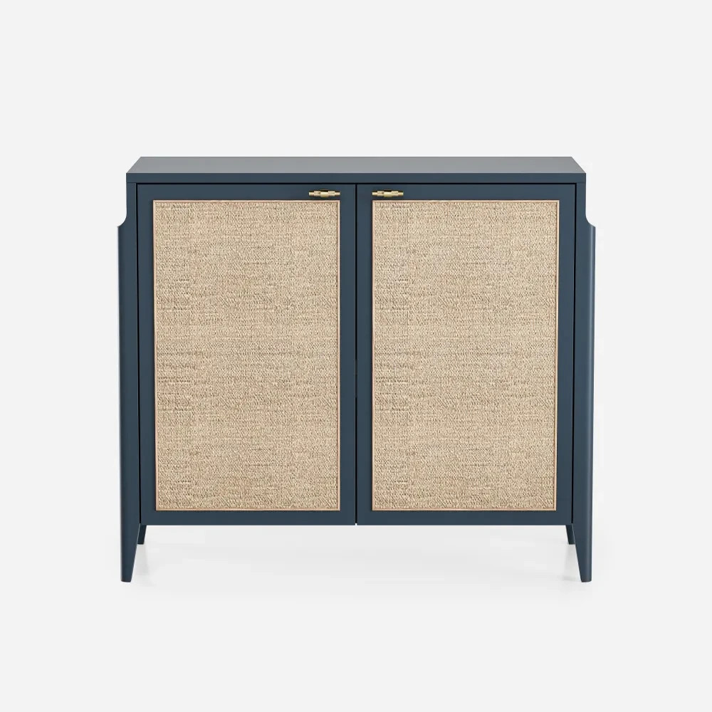 Комод с ротангом Vishera синего цвета выполнен из МДФ, покрытого матовой итальянской эмалью. В основе дизайна коллекции – оригинальный фасадный декор, выполненный из натурального ротангового полотна.