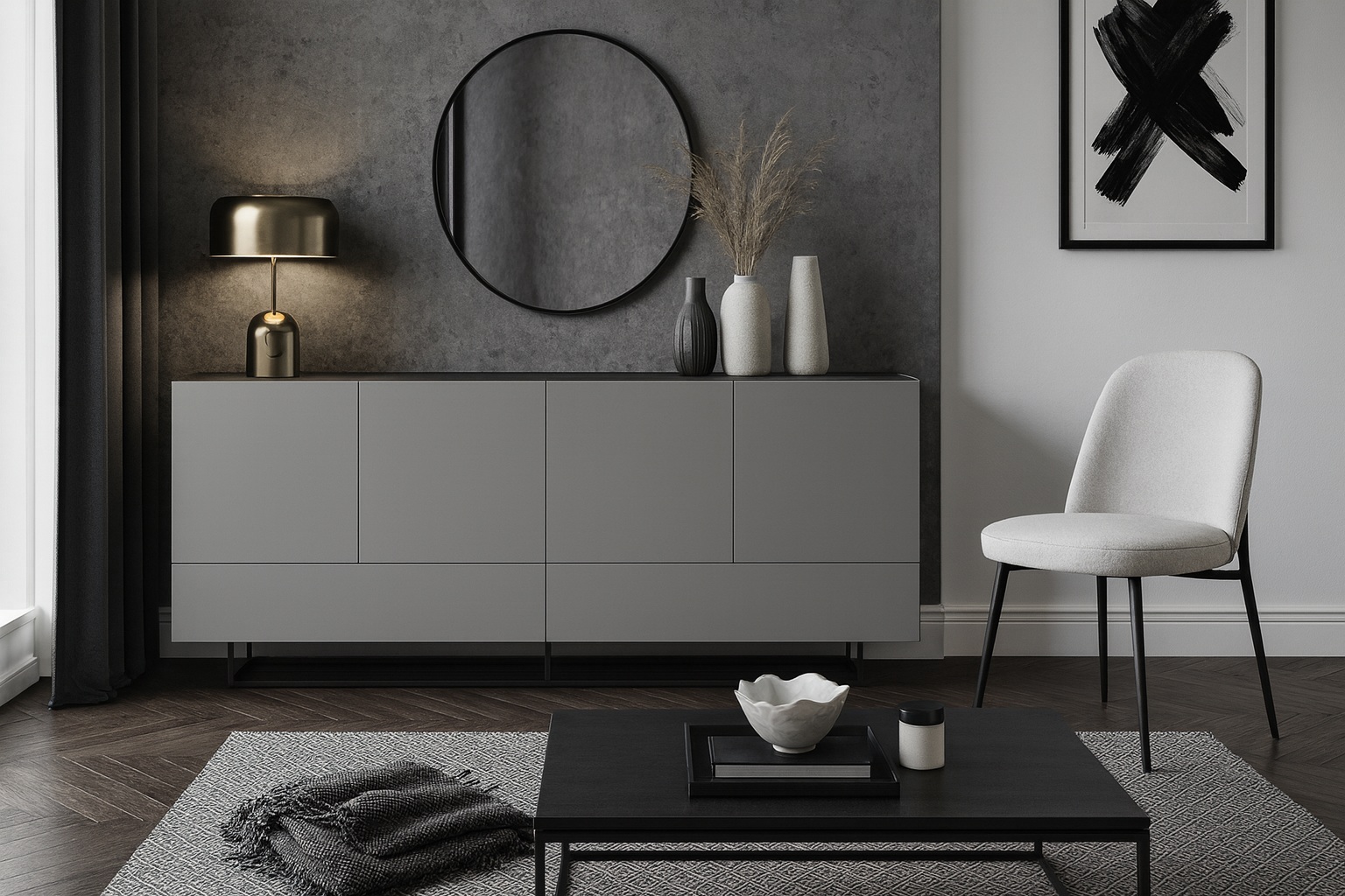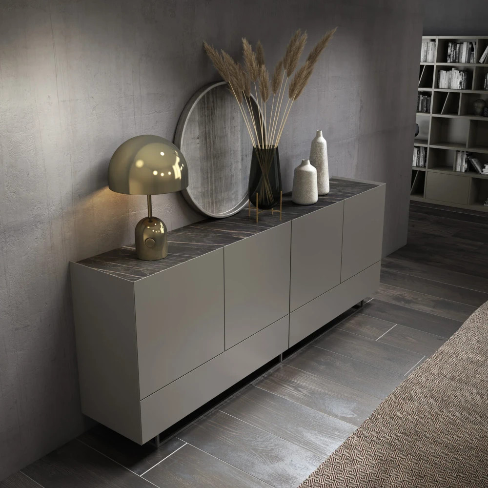 Простота, возвышенная до искусства Элегантный комод scomp621 — это строгие геометрические формы, глухие фасады без ручек и гармония отделок. Массивная композиция с идеально ровной линией цоколя кажется монолитной, но внутри скрывает функциональные отсеки хранения.