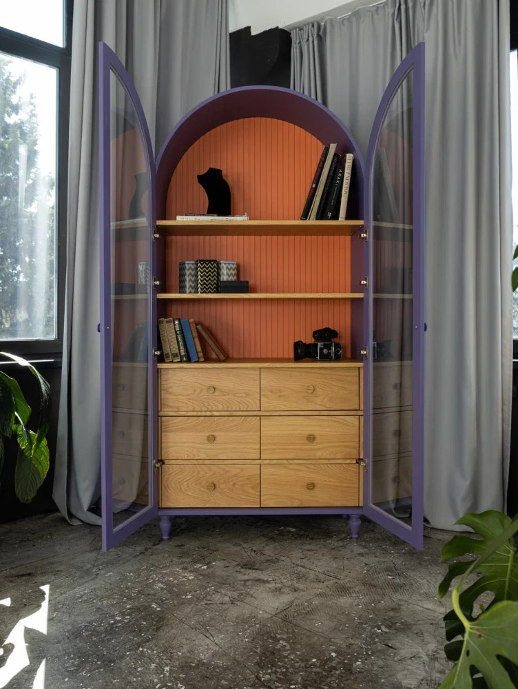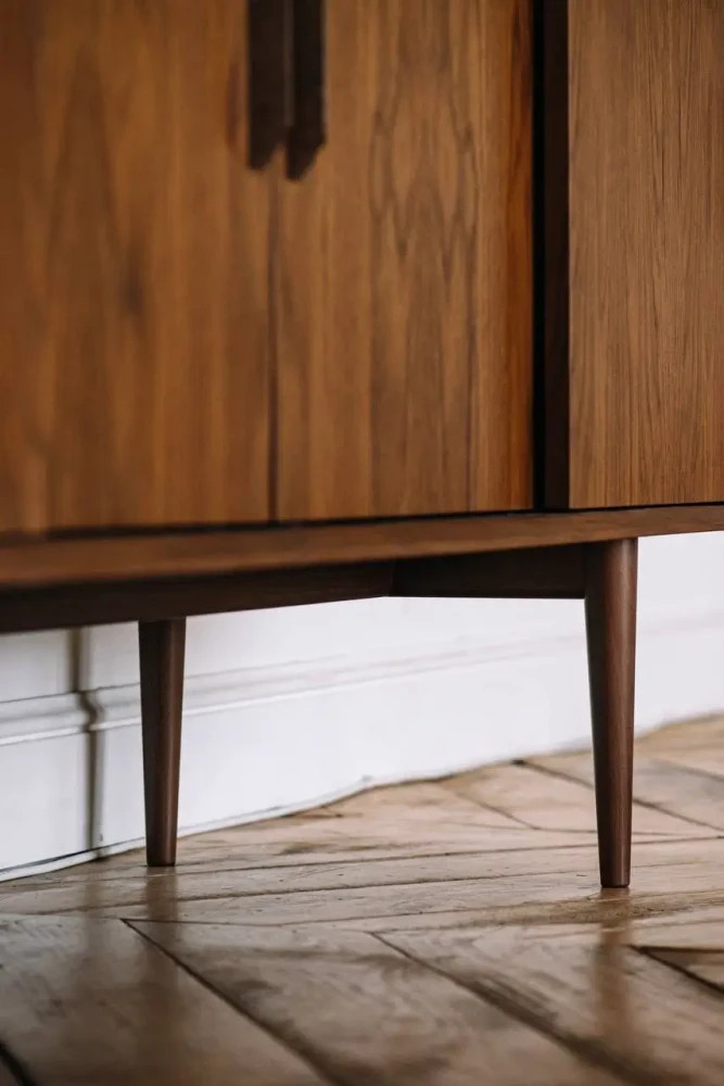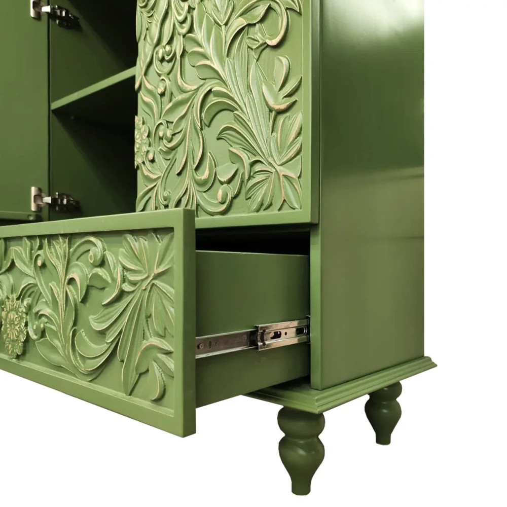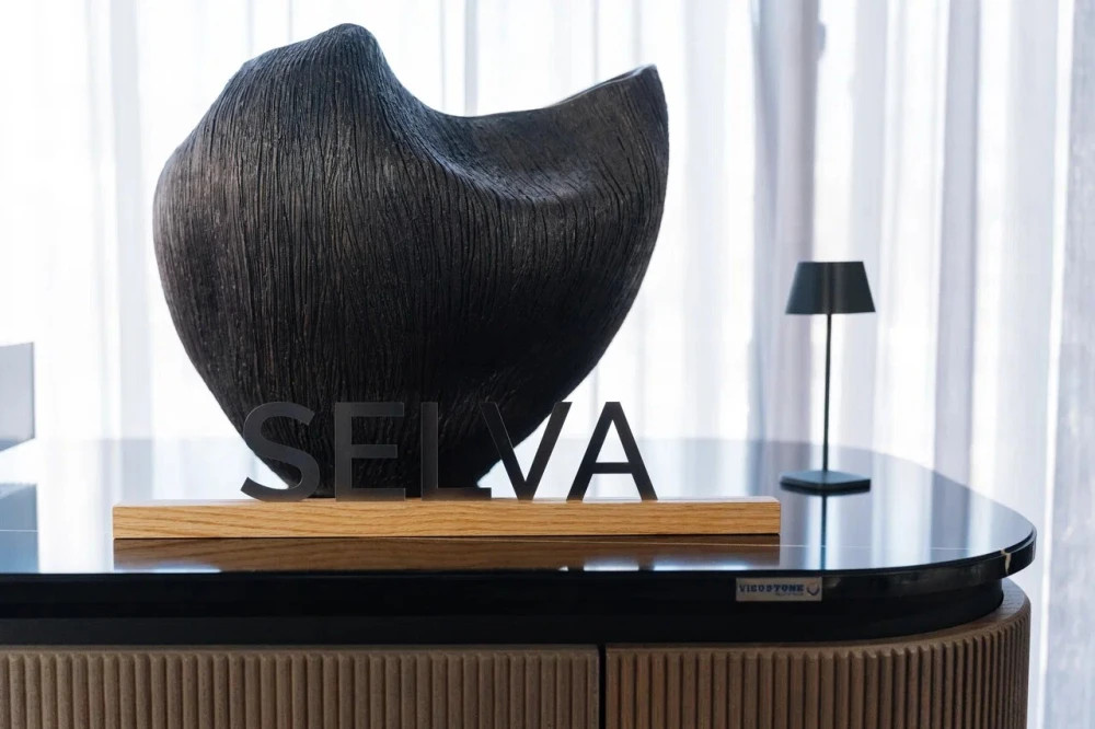Толстое нанесение шпона с вертикальной фрезеровкой придает комоду неповторимый вид. Вертикальная структура фасадов создает живой направленный вверх образ, напоминающий прямые колоннообразные стволы деревьев тропического леса - сельвы, давшего название новой модели.
