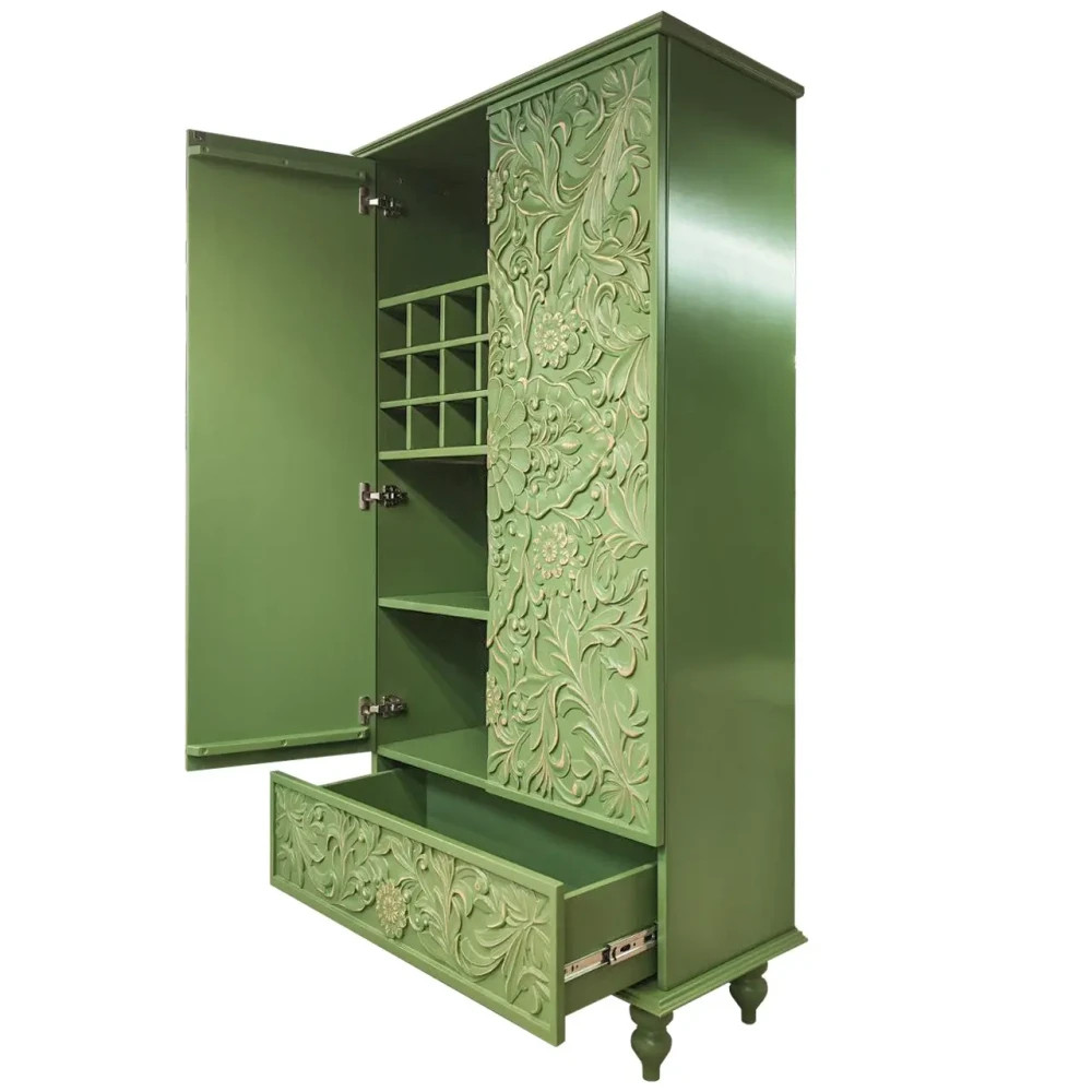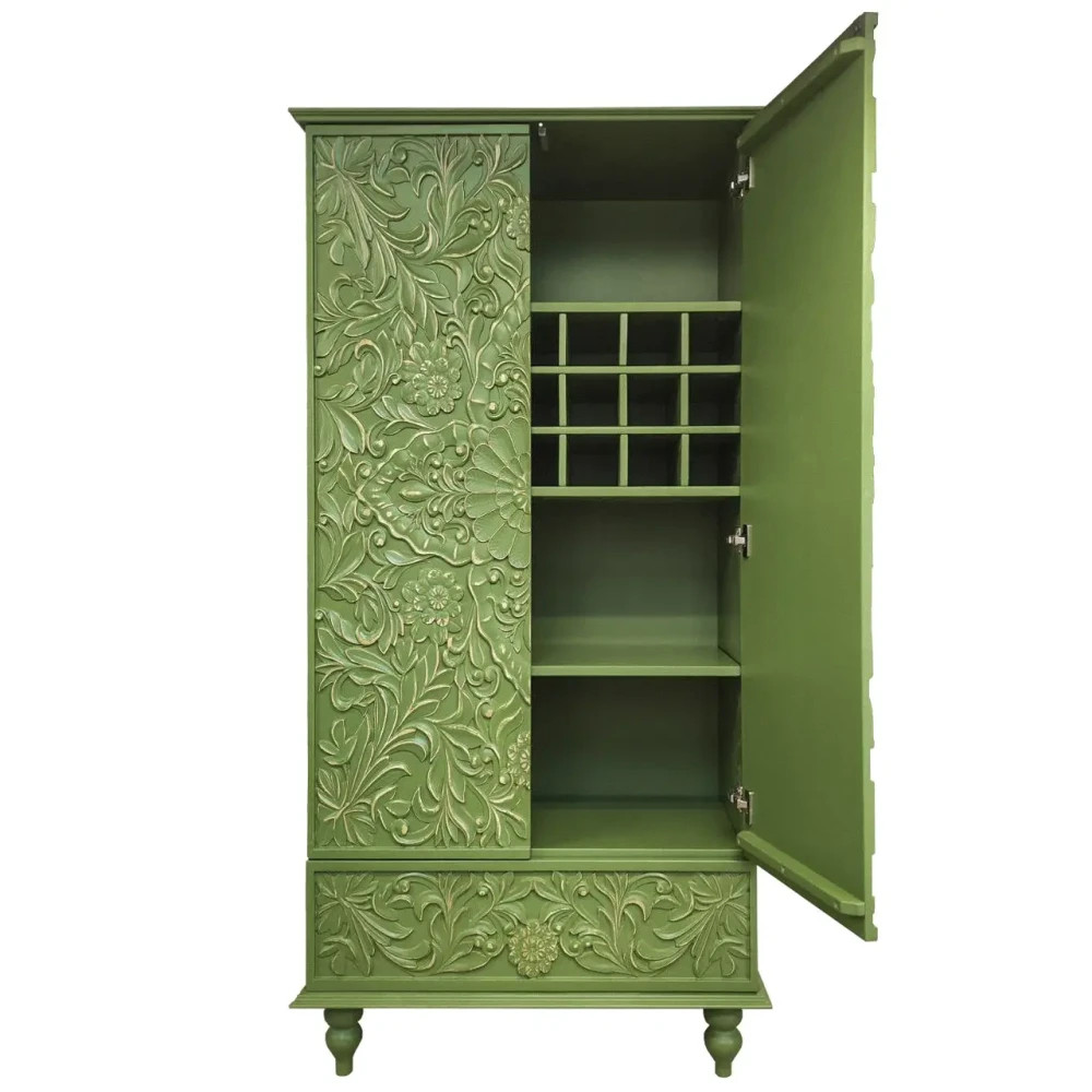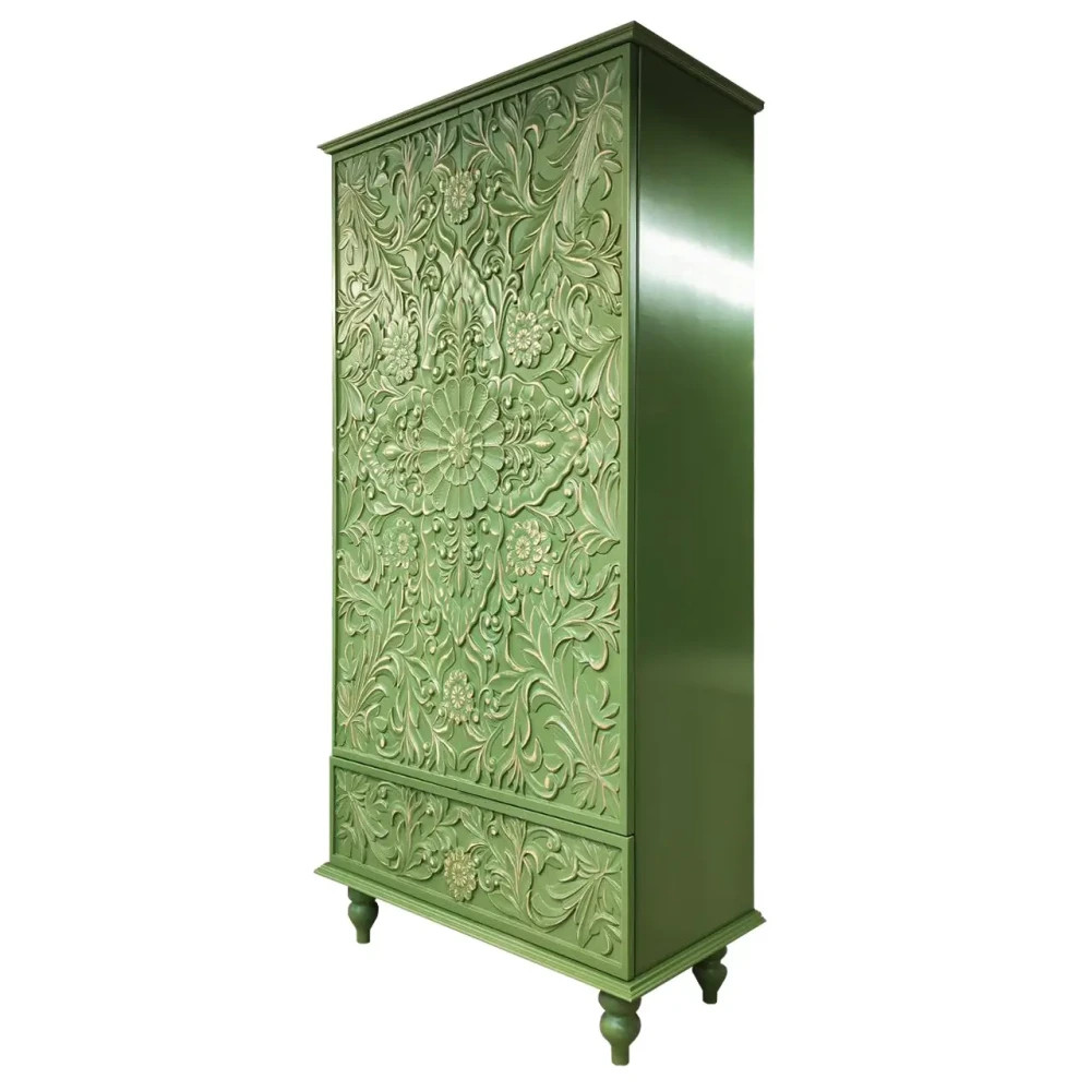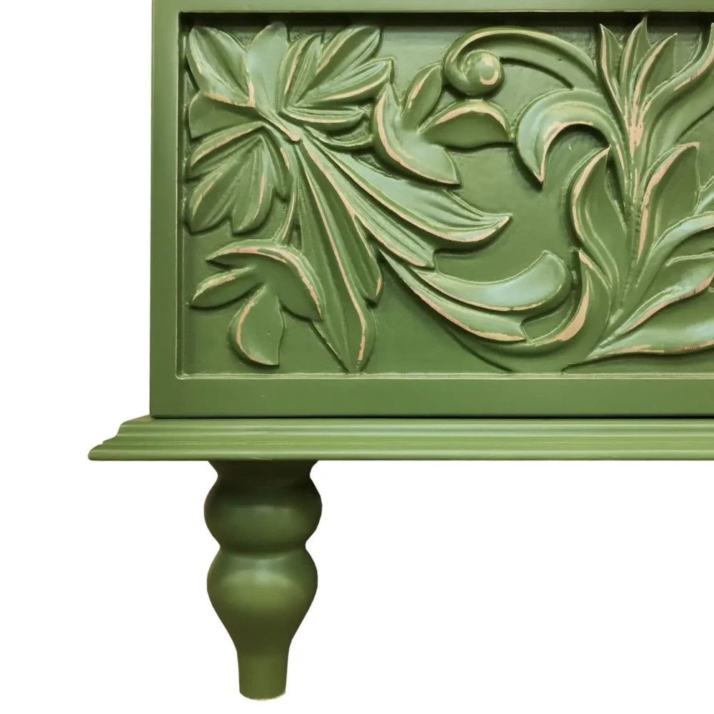 Толстое нанесение шпона с вертикальной фрезеровкой придает комоду неповторимый вид. Вертикальная структура фасадов создает живой направленный вверх образ, напоминающий прямые колоннообразные стволы деревьев тропического леса - сельвы, давшего название новой модели.