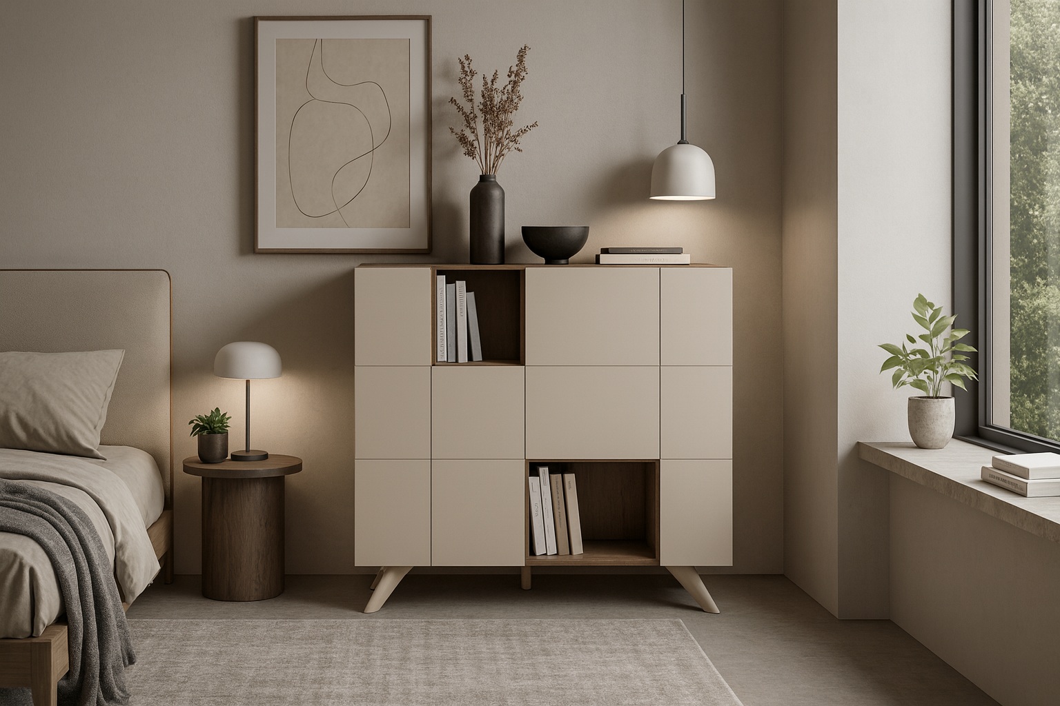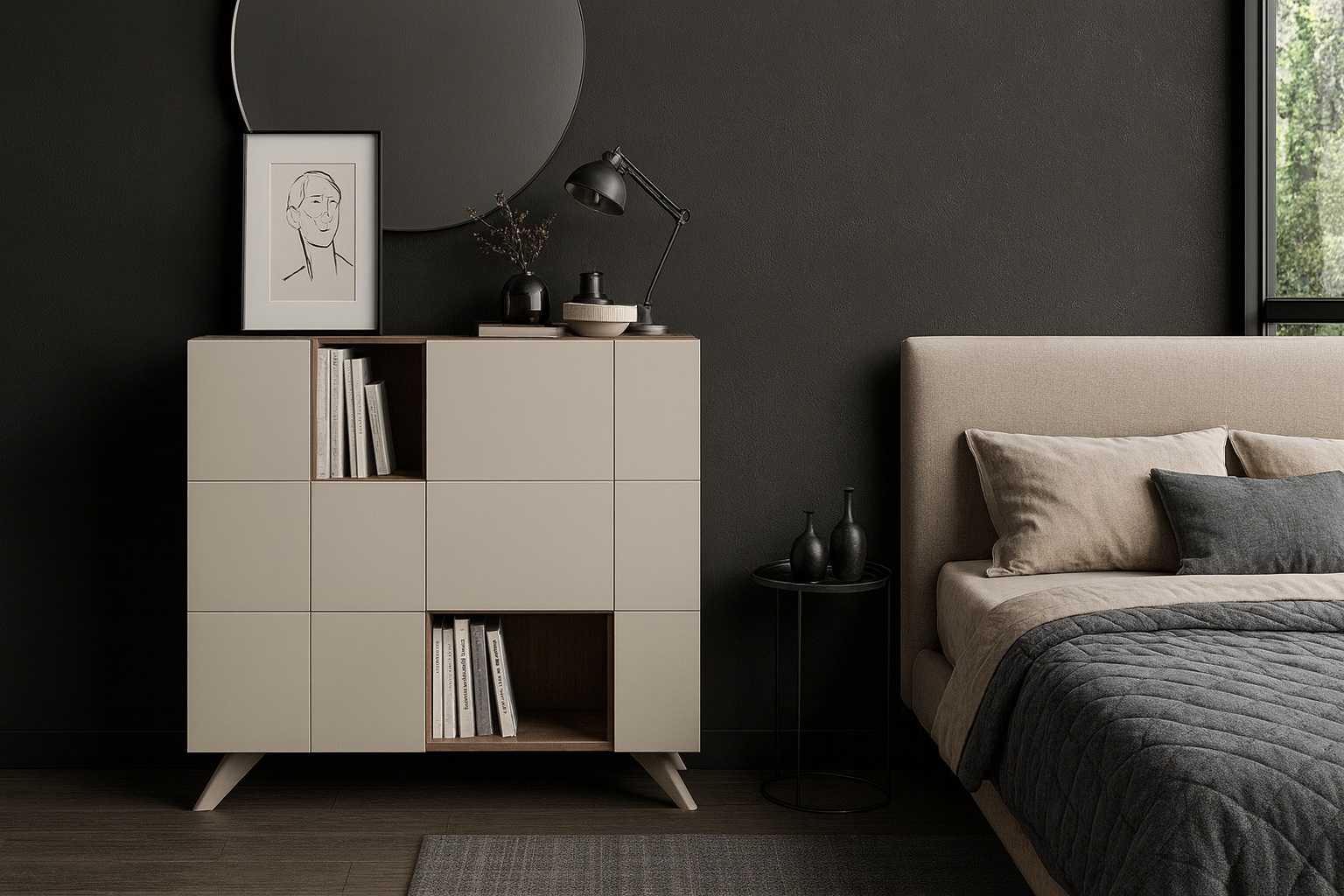 SR1502 — это манифест минимализма и архитектурного мышления в мебели. Продуманная асимметрия и объёмно-плоскостная композиция превращают его в скульптурный объект, который не только хранит, но и формирует пространство.