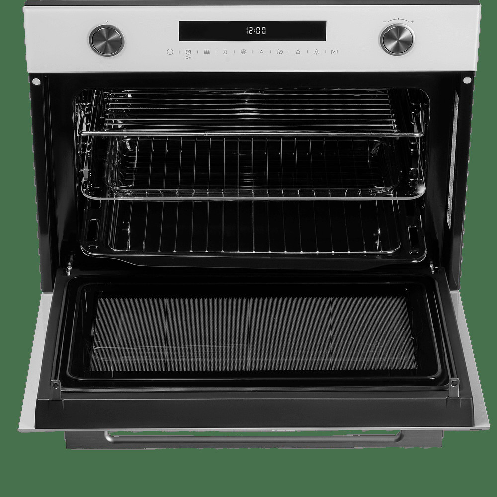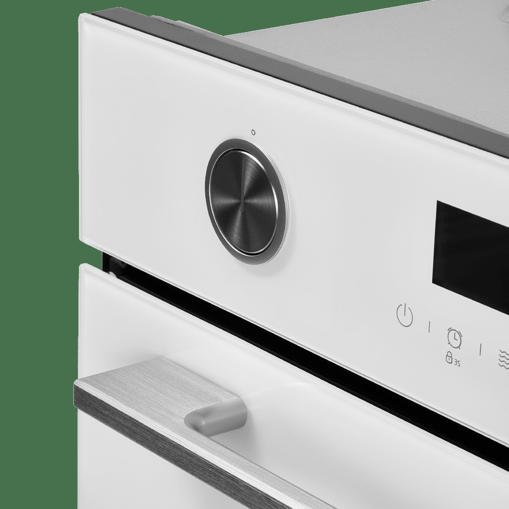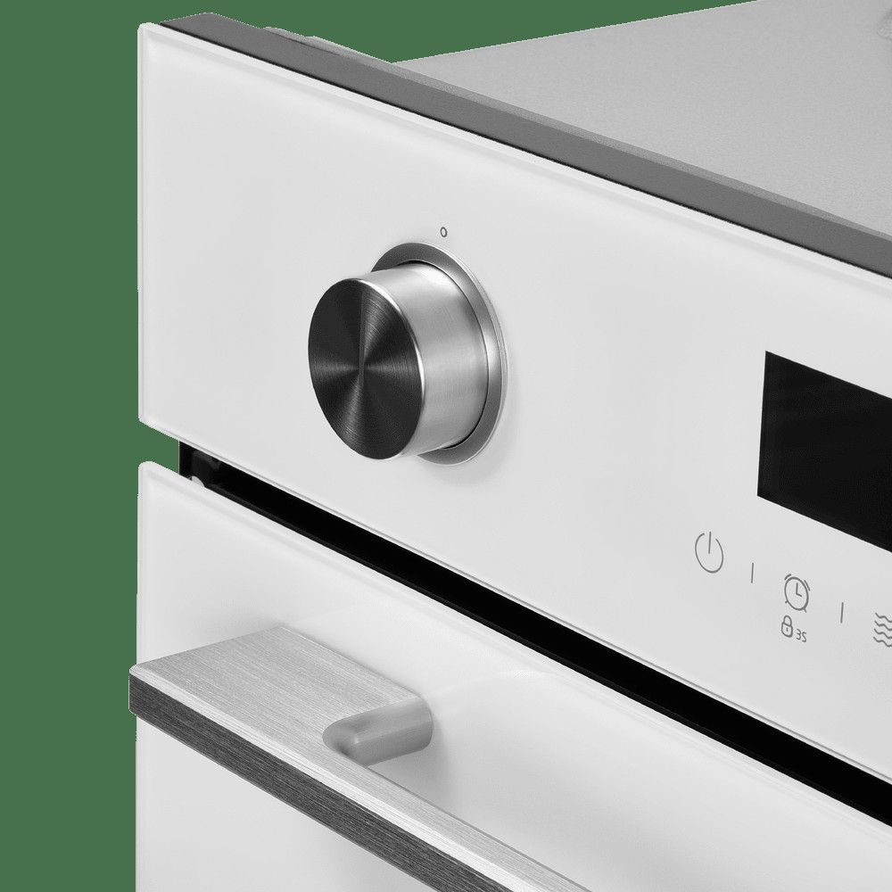 Фронтальная панель сделана из высококачественного жаропрочного стекла . Цельнометаллическая ручка дверцы из матированной нержавеющей стали лаконично поддерживает общий стиль и не нагревается во время готовки.