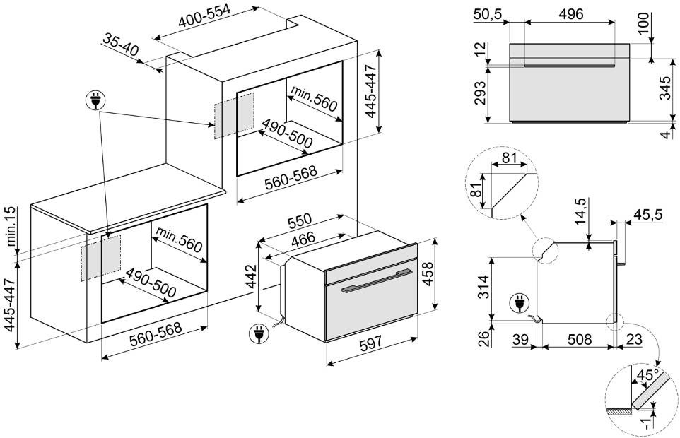 Габариты ниши для встраивания (В х Ш х Г), см 44.5-44.7 х 55.4-56.4 х 56