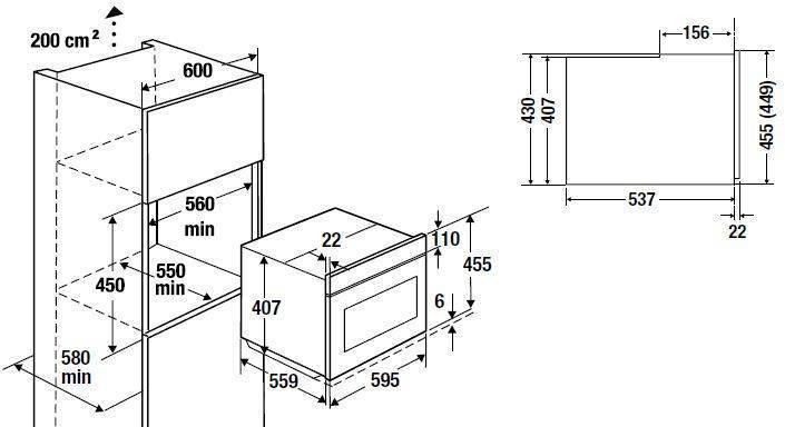 Размеры ниши для встраивания (Ш х Г x В): 560 x 550 x 450 мм