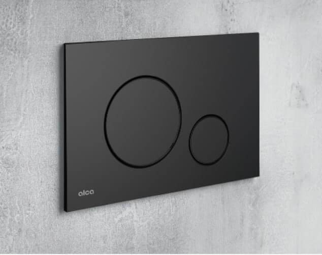 Комплект 4в1 AlcaPlast AM101/1120-4:1 RU M678-0001: система инсталляции AM101/1120 с черной матовой круглой кнопкой M678 и прокладкой M91