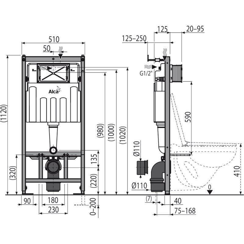 Монтажная глубина – 125 мм, со стоковым коленом – 160 мм