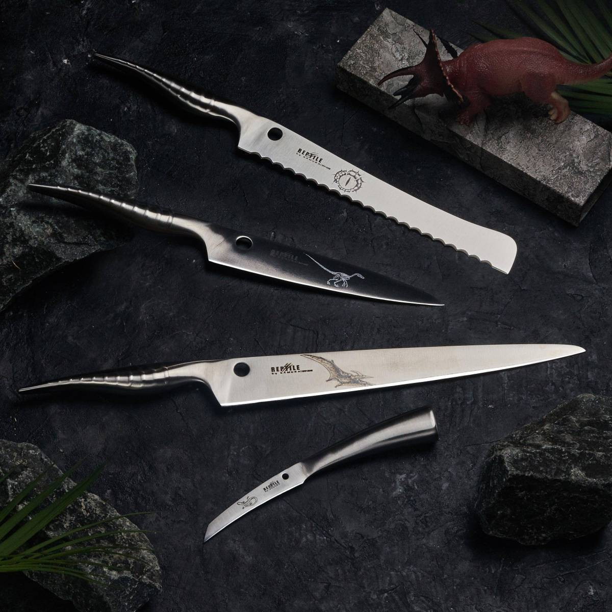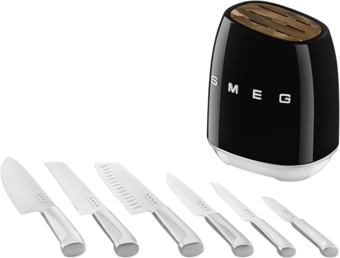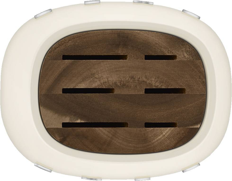 Комплект включает ножи, изготовленные из высококачественной нержавеющей стали немецкого сплава, что гарантирует долговечность и устойчивость к коррозии. Пазы для ножей выполнены из дерева акации, что добавляет набору утончённости и природного тепла. Прочный корпус и основание из глянцевого пластика с хромированной отделкой подчеркивают премиальный вид набора.