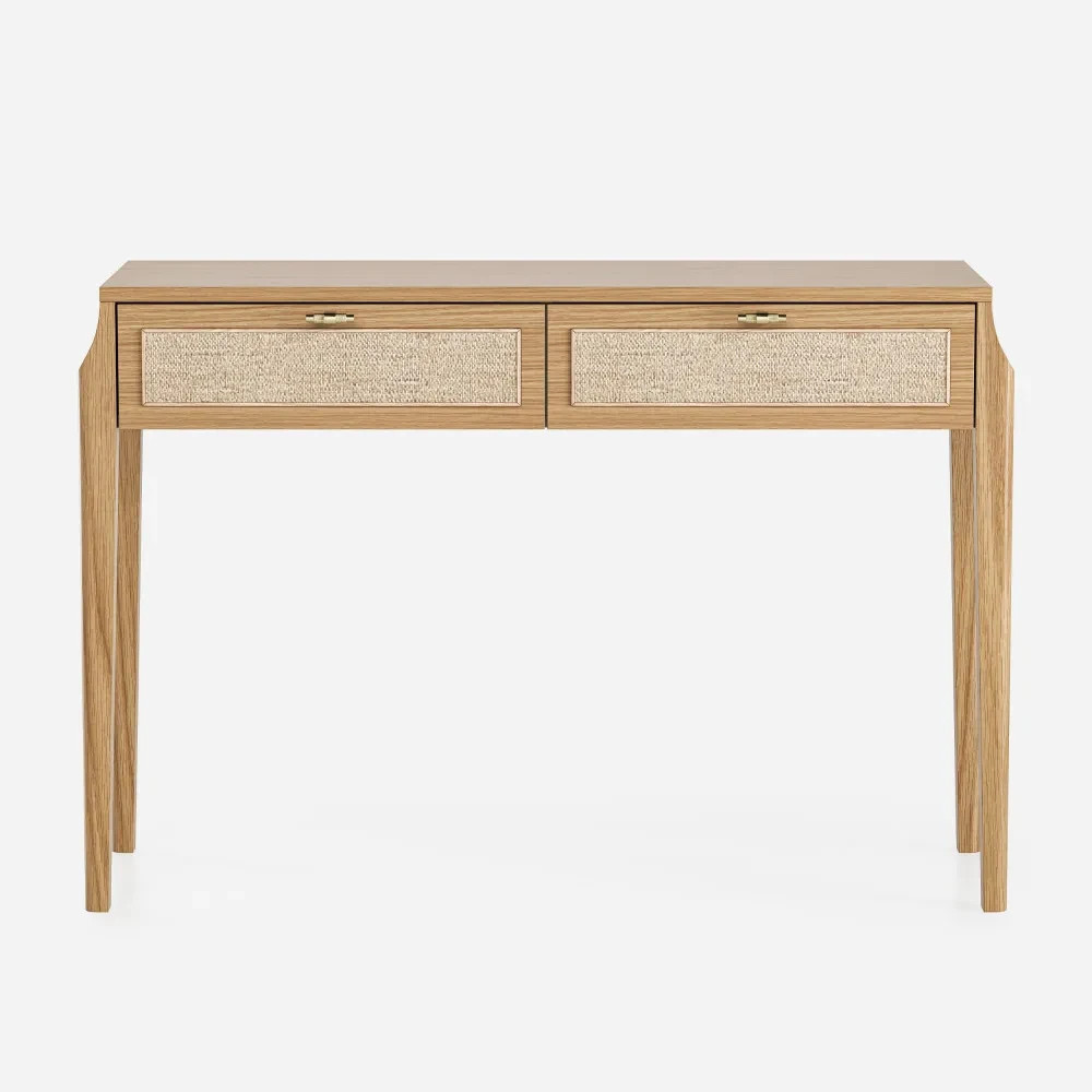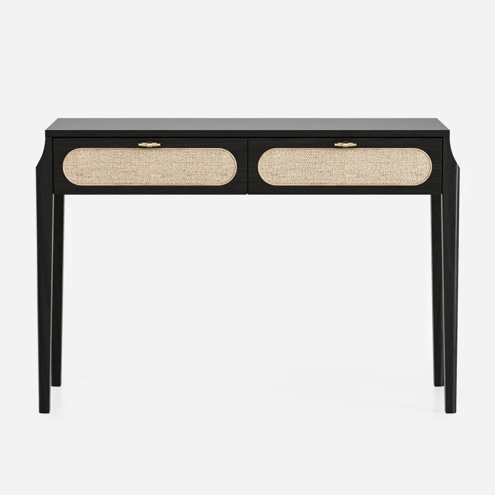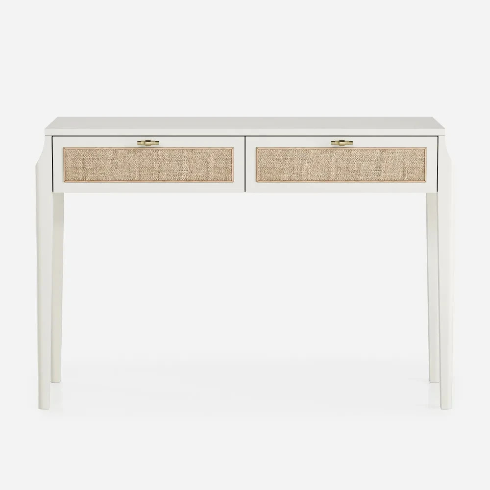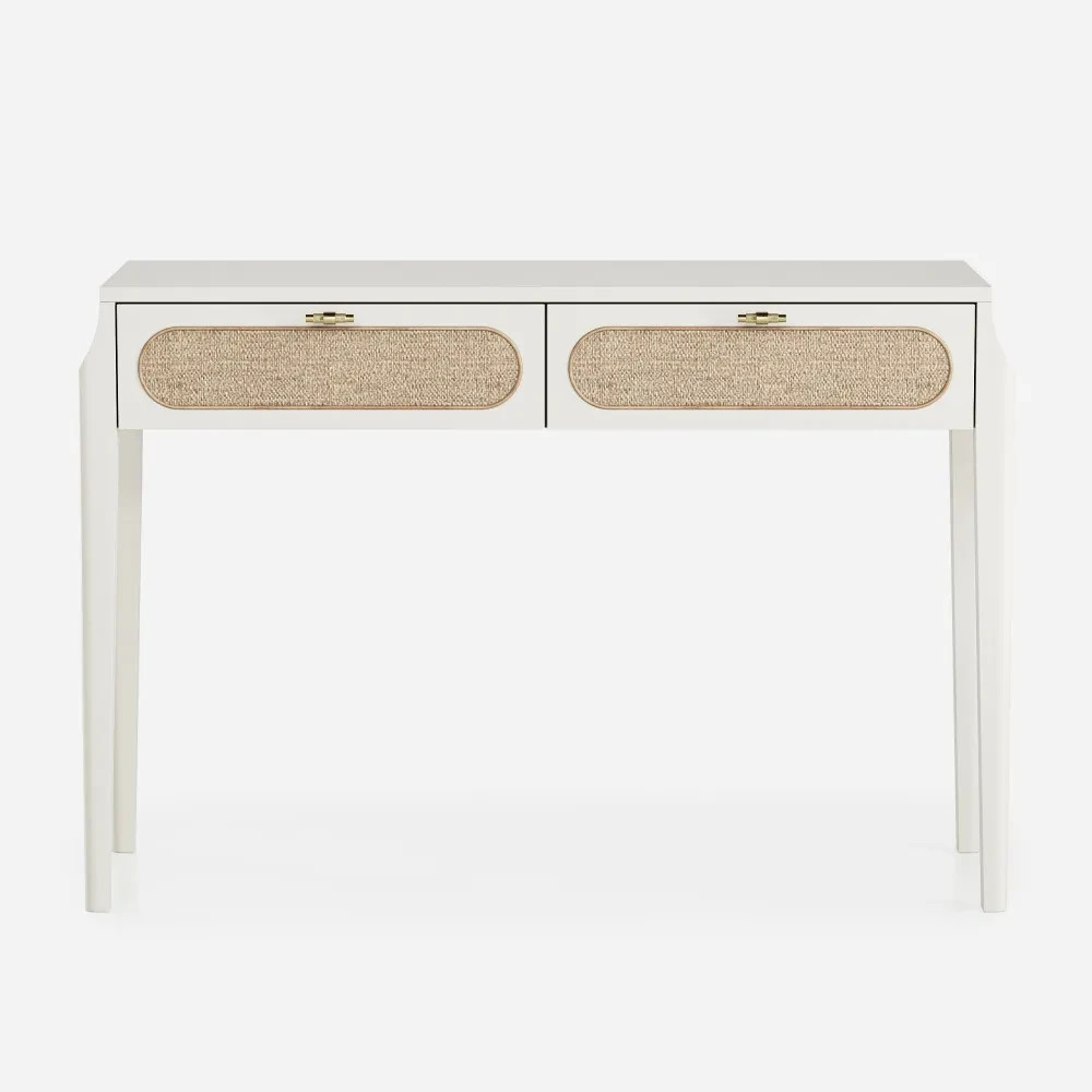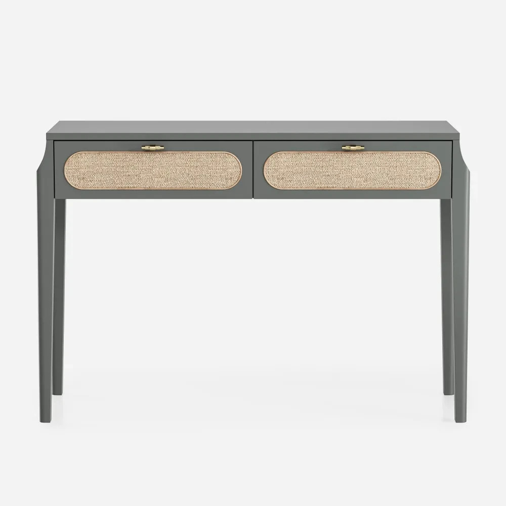 Консоль подвесная с ротангом tioTeo Vishera морского цвета выполнена из МДФ, покрытого матовой итальянской эмалью. В основе дизайна коллекции – оригинальный фасадный декор, выполненный из натурального ротангового полотна.