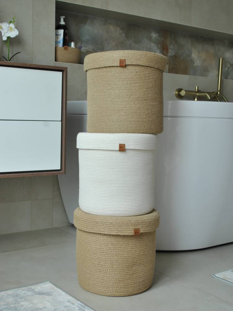 Корзина интерьерная из натурального джута — идеальное решение для стильного и функционального хранения. Эта большая корзина станет прекрасным дополнением к любому интерьеру, благодаря своему элегантному дизайну и экологически чистым материалам. Изготовленная из натурального джута, корзина отличается прочностью и долговечностью, что делает её идеальной для хранения вещей в гостиной, спальне или детской. Крышка с ручкой из натуральной кожи добавляет изюминку и удобство в использовании. Естественный цвет и текстура корзины из джута создают уютную атмосферу и гармонично вписываются в различные стили: от скандинавского до бохо.Не упустите возможность приобрести эту практичную и эстетичную интерьерную корзину из джута. Она не только поможет организовать пространство, но и станет стильным акцентом в вашем интерьере. Корзина с крышкой — отличный выбор для тех, кто ценит качество и стиль.
