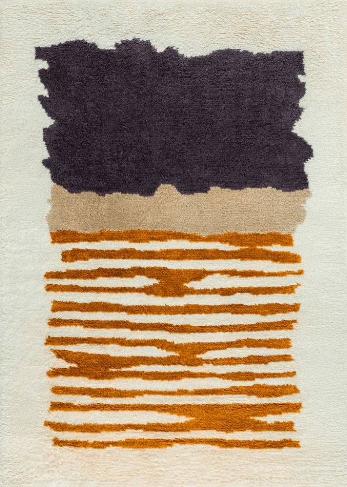 Ковер Beni N2 — это дизайнерская ручная работа с характером. Его высокий ворс из натуральной шерсти отсылает к уюуту и теплу марокканских домов, а контрастные цвета соединяются в картину с теплыми закатными лучами солнца за морским горизонтом.