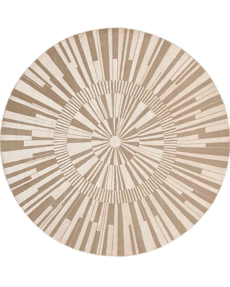 Дизайнерский ковер Rays — ковер представляет собой круг с расходящимися из центра лучами. Но помимо них, кому-то рисунок может напомнить клавиатуру пианино, кому-то — деталь механизма. Этим и ценен хороший дизайн — в нём каждый может увидеть что-то своё.