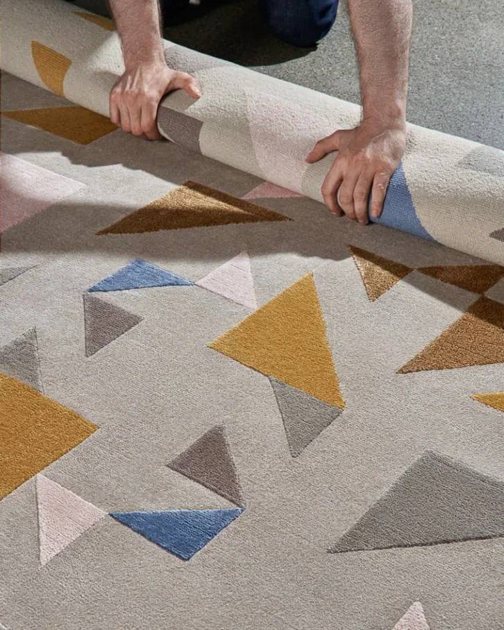 Theorem P Gold — это уникальный ковер ручной работы с выразительной геометрией и глубокой текстурой. Рисунок модели Theorem собирается из аккуратных сочетаний прямоугольных треугольников разных цветов. Отсюда и название модели: при создании ковра дизайнер Ева Бергман ссылалась на теорему Пифагора.