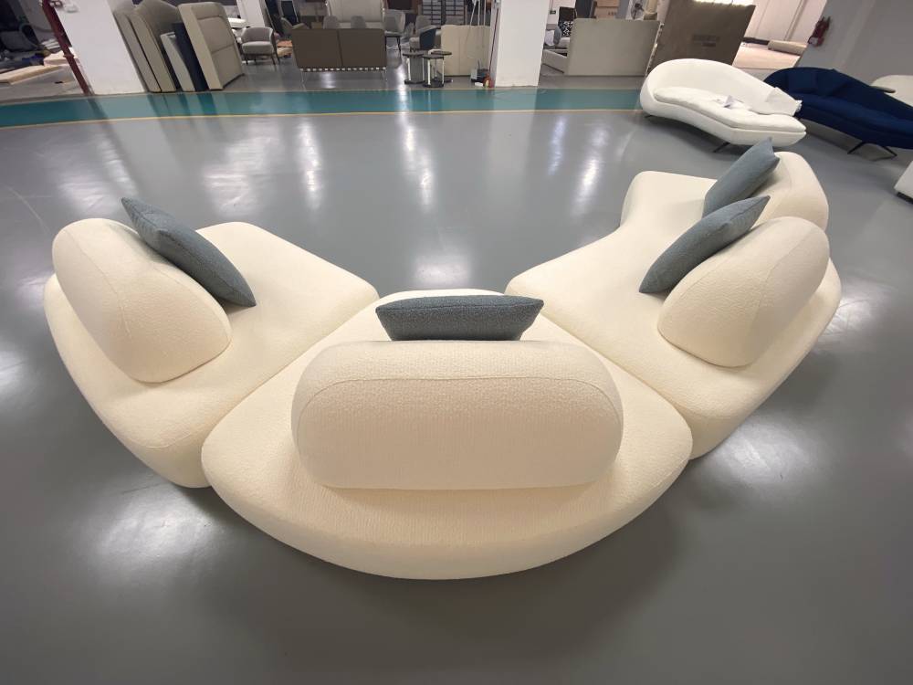 Невероятно мягкое сидение, поворотная база и пуховые декоративные подушки завершают шикарный образ этой модели кресла.
