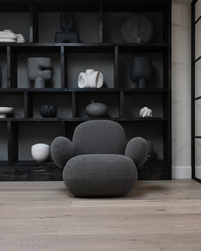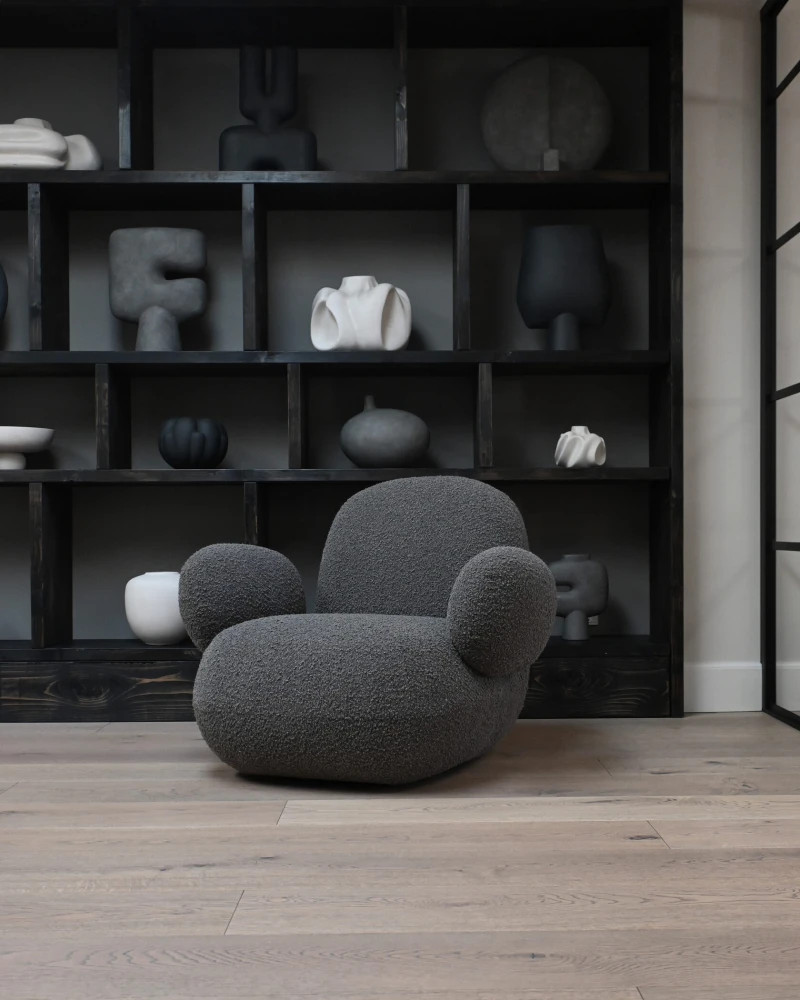 Обтекаемые формы, низкая посадка и мягкая австралийская овчина делают кресло настоящим заявлением в интерьере.