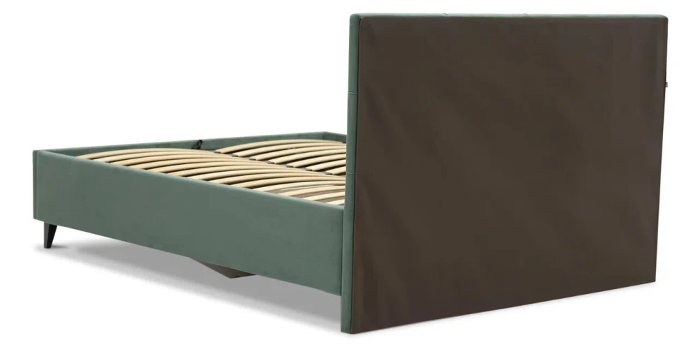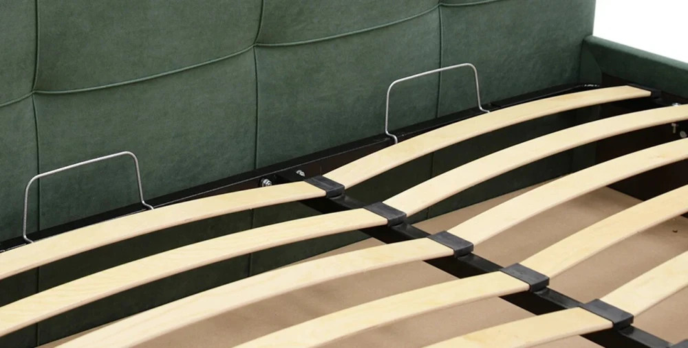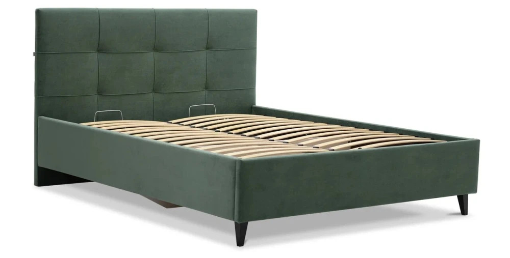Каркас кровати надежен и долговечен, выполнен из бруса дерева. Кровать оснащена подъемным механизмом, благодаря которому осуществляется доступ к вместительному ящику для белья. Ортопедическое основание обладает необходимой упругостью, которая позволяет прогибаться в зависимости от приложенной нагрузки, тем самым гармонично дополняя ортопедические свойства матраса. Решетчатая структура основания не мешает воздуху циркулировать, что наилучшим образом сказывается на гигиенических свойствах матраса, ведь в нем не будет скапливаться влага, пыль и запахи.
