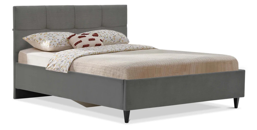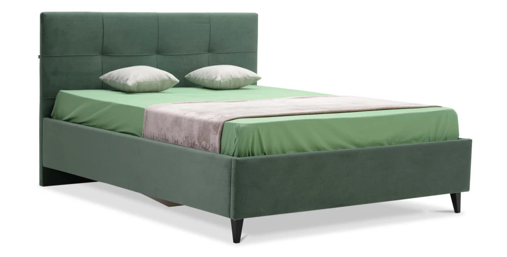 Кровать с мягким изголовьем на высоких ножках. Приподнятое над полом основание делает габаритную модель визуально легкой, добавляет обстановке «воздуха». Высокие опоры позволят с легкостью осуществить уборку. Высокое качество материалов и сборки отвечают за долговечность и надежность конструкции.