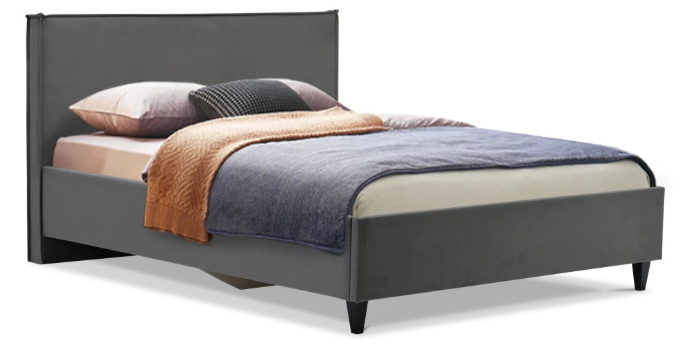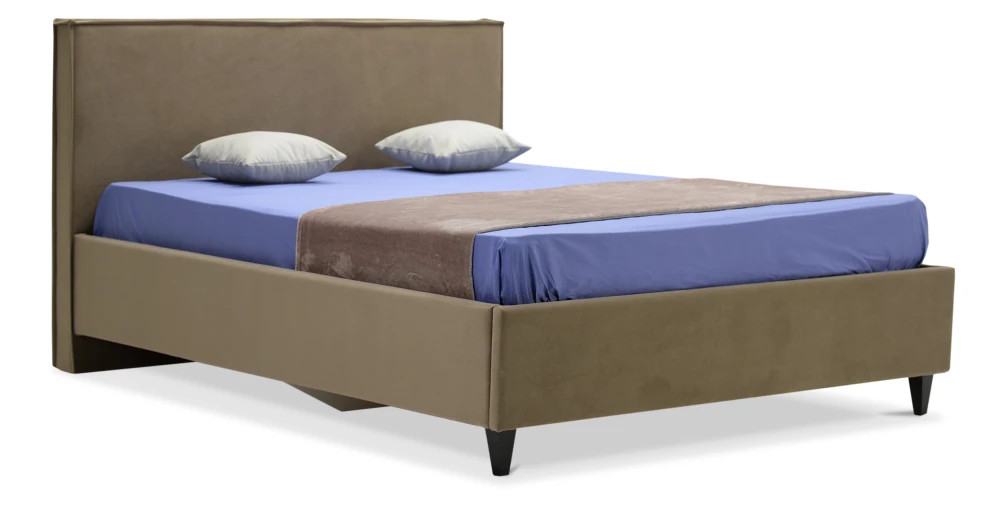 Кровать с мягким изголовьем на высоких ножках. Приподнятое над полом основание делает габаритную модель визуально легкой, добавляет обстановке «воздуха». Высокие опоры позволят с легкостью осуществить уборку. Высокое качество материалов и сборки отвечают за долговечность и надежность конструкции. Высокое стильное изголовье с дизайном "швы наружу".