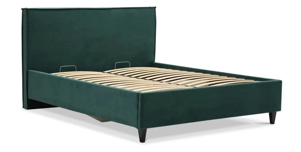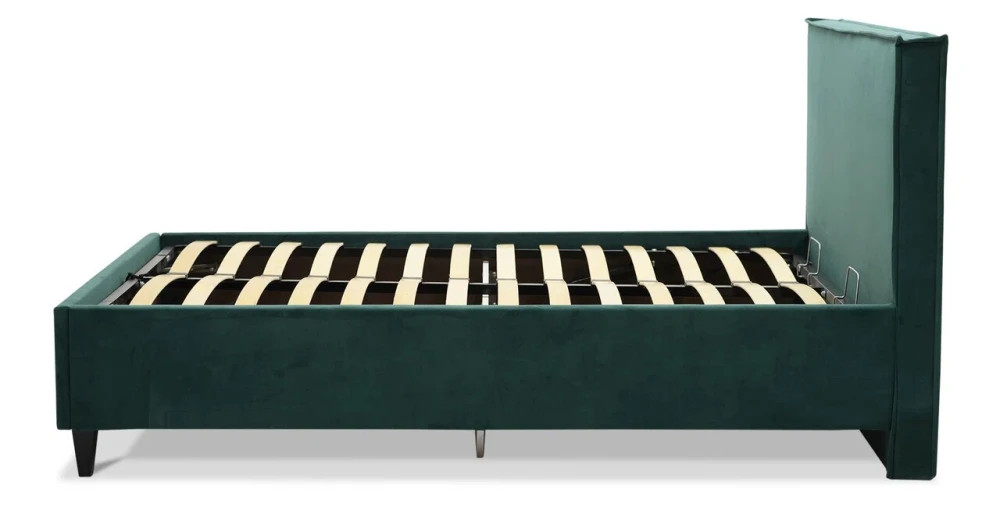 Каркас кровати надежен и долговечен, выполнен из бруса дерева. Кровать оснащена подъемным механизмом, благодаря которому осуществляется доступ к вместительному ящику для белья. Ортопедическое основание обладает необходимой упругостью, которая позволяет прогибаться в зависимости от приложенной нагрузки, тем самым гармонично дополняя ортопедические свойства матраса. Решетчатая структура основания не мешает воздуху циркулировать, что наилучшим образом сказывается на гигиенических свойствах матраса, ведь в нем не будет скапливаться влага, пыль и запахи.