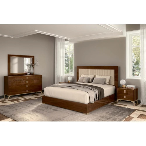 Кровать из коллекции Eva со спальным местом 160х200 см. Изголовье имеет мягкую обивку из бархата бежевого цвета.