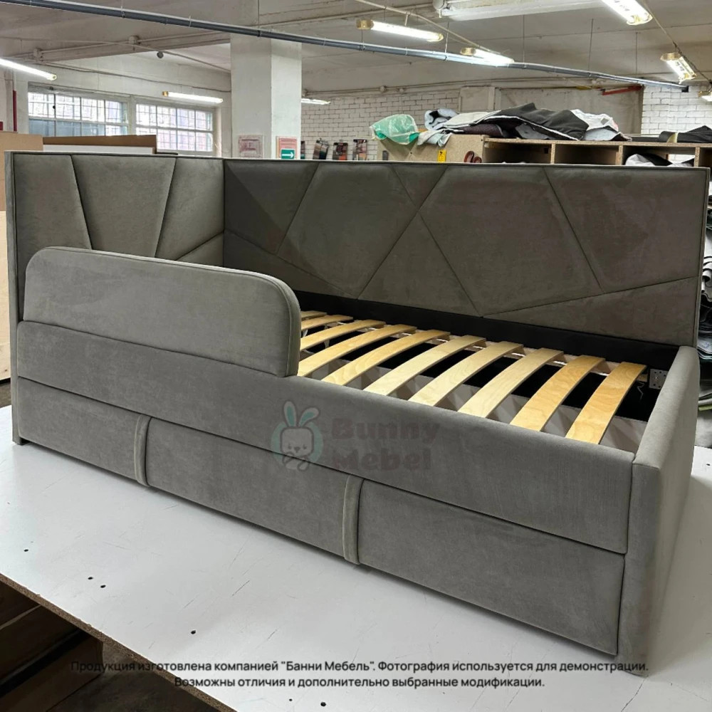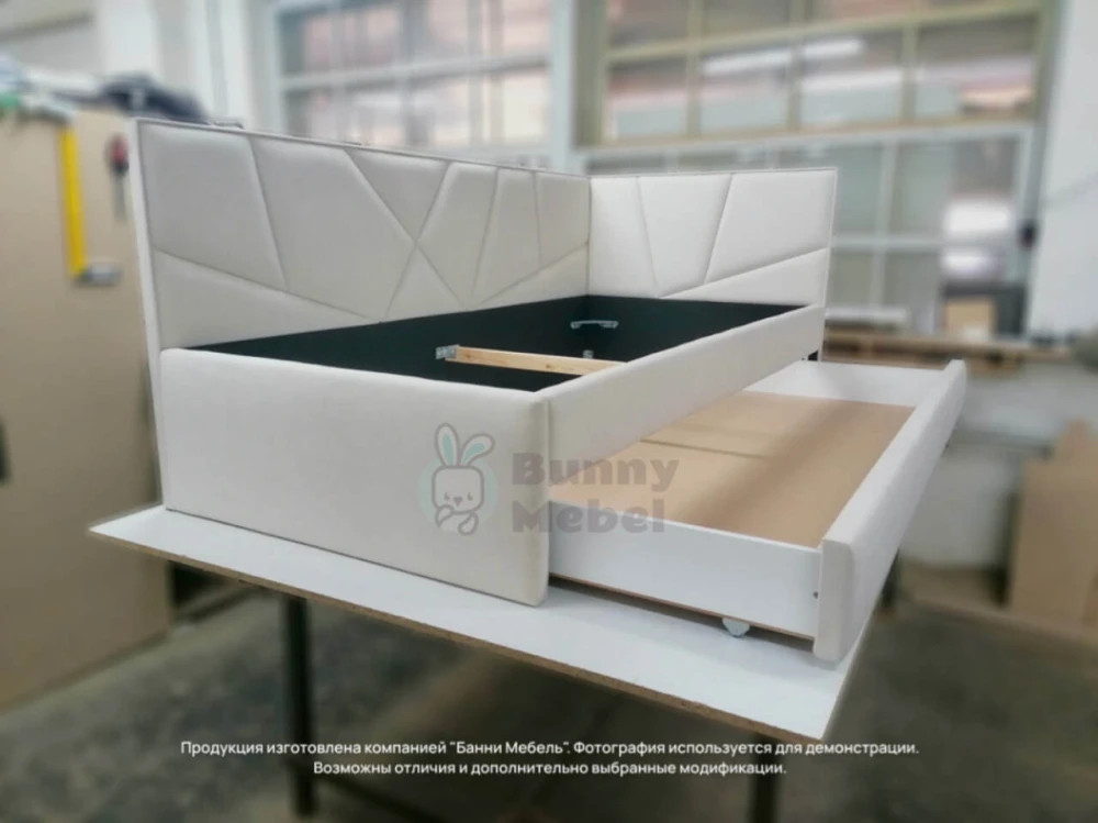 Эту модель можно доукомплектовать выкатным ящиком для игрушек или белья, дополнительным спальным местом, защитным бортиком от падения, подъемным механизмом, ортопедическим матрасом, наматрасником в цвет кровати