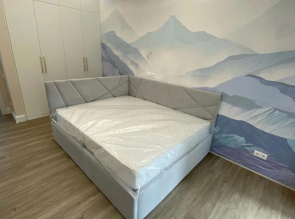 Уютная стильная кровать с геометрическими фигурами разных форм