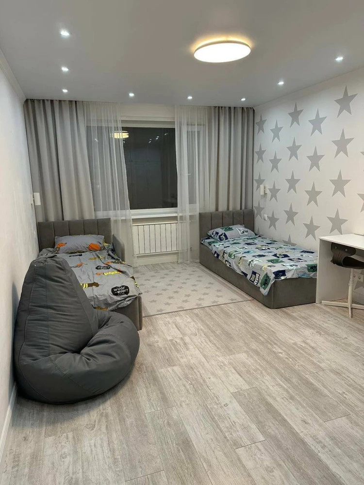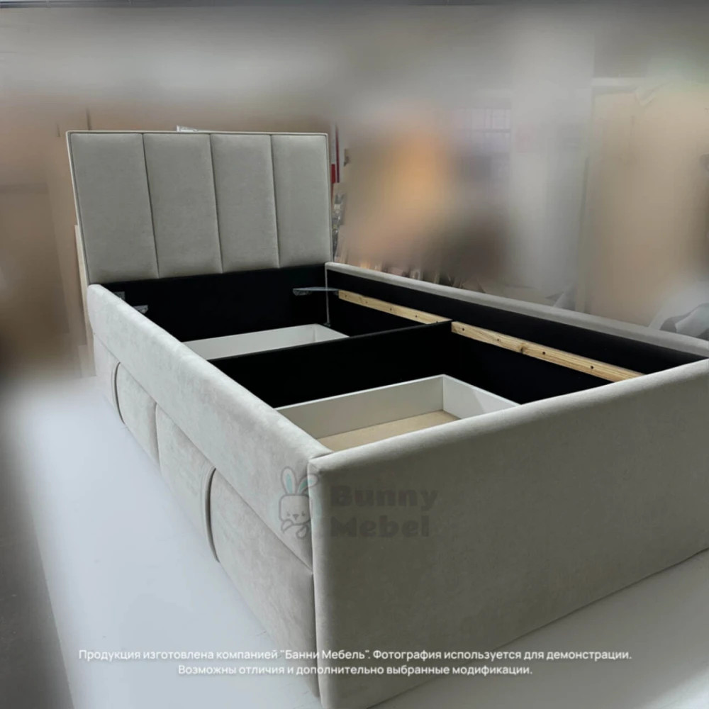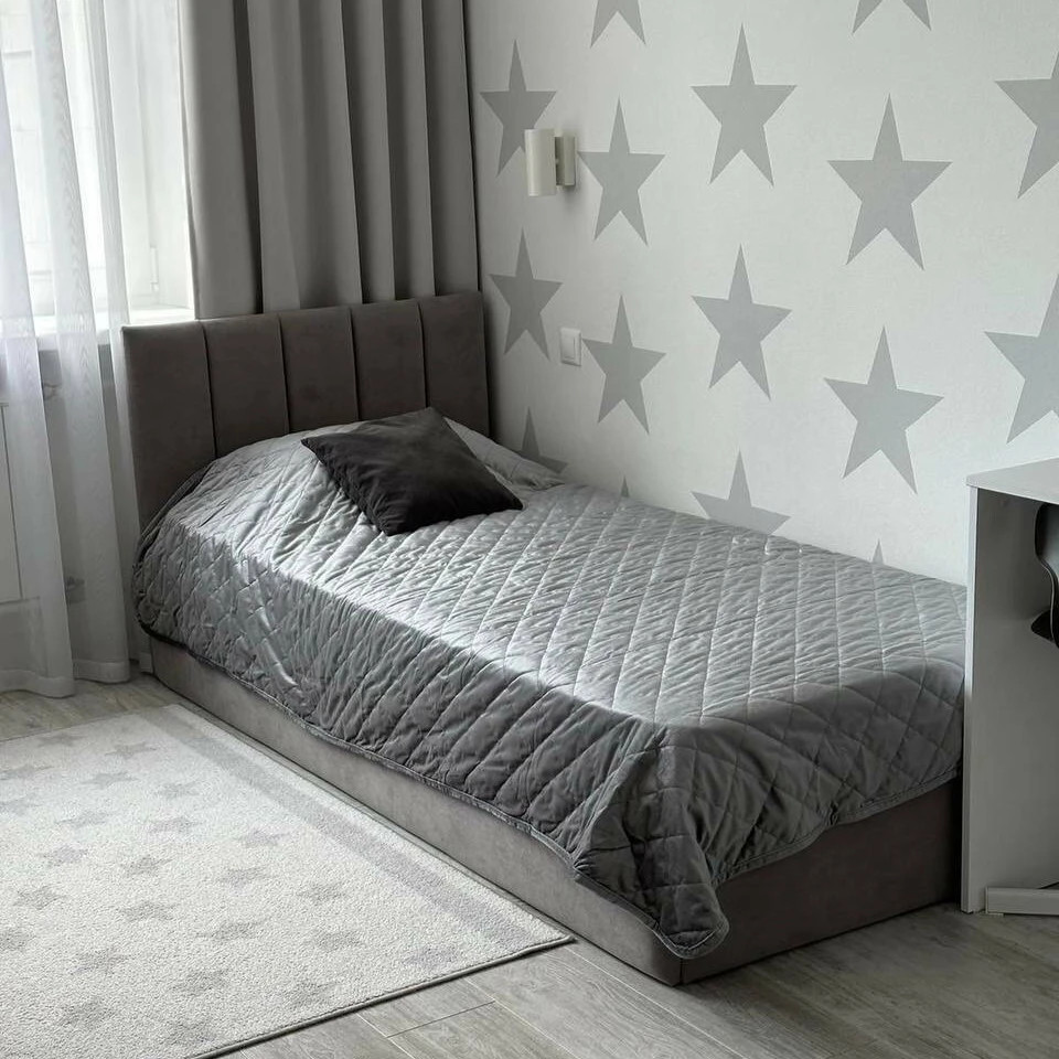 Уютная стильная лаконичная кровать с мягким изголовьем