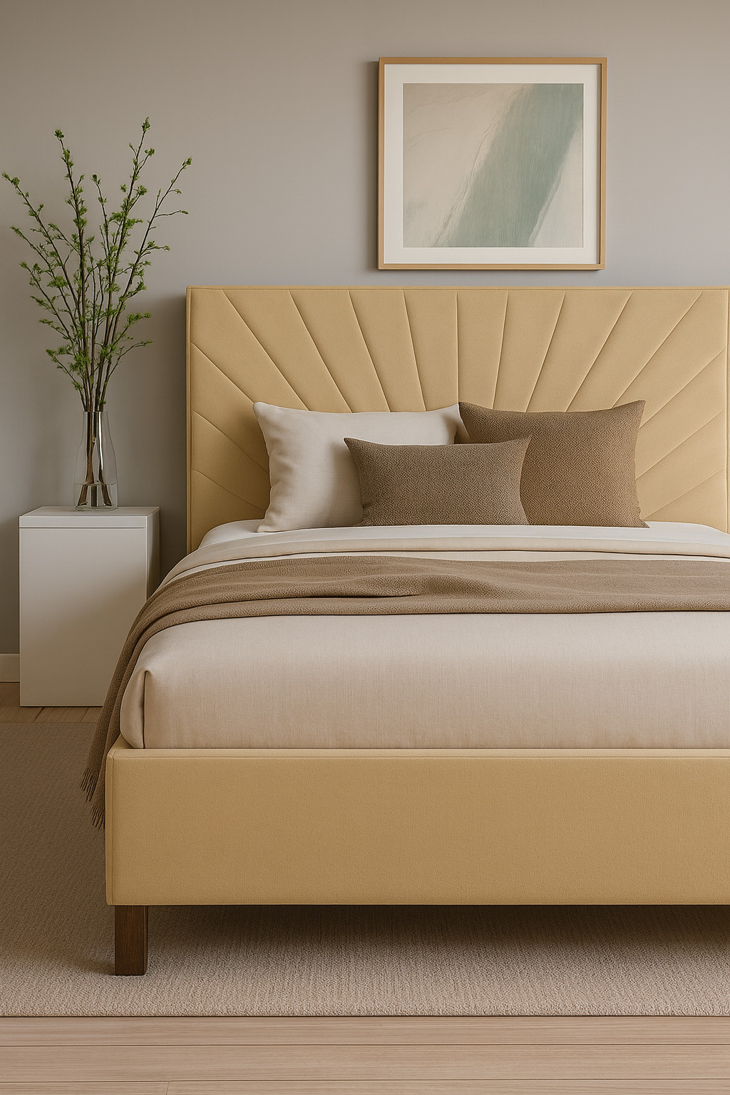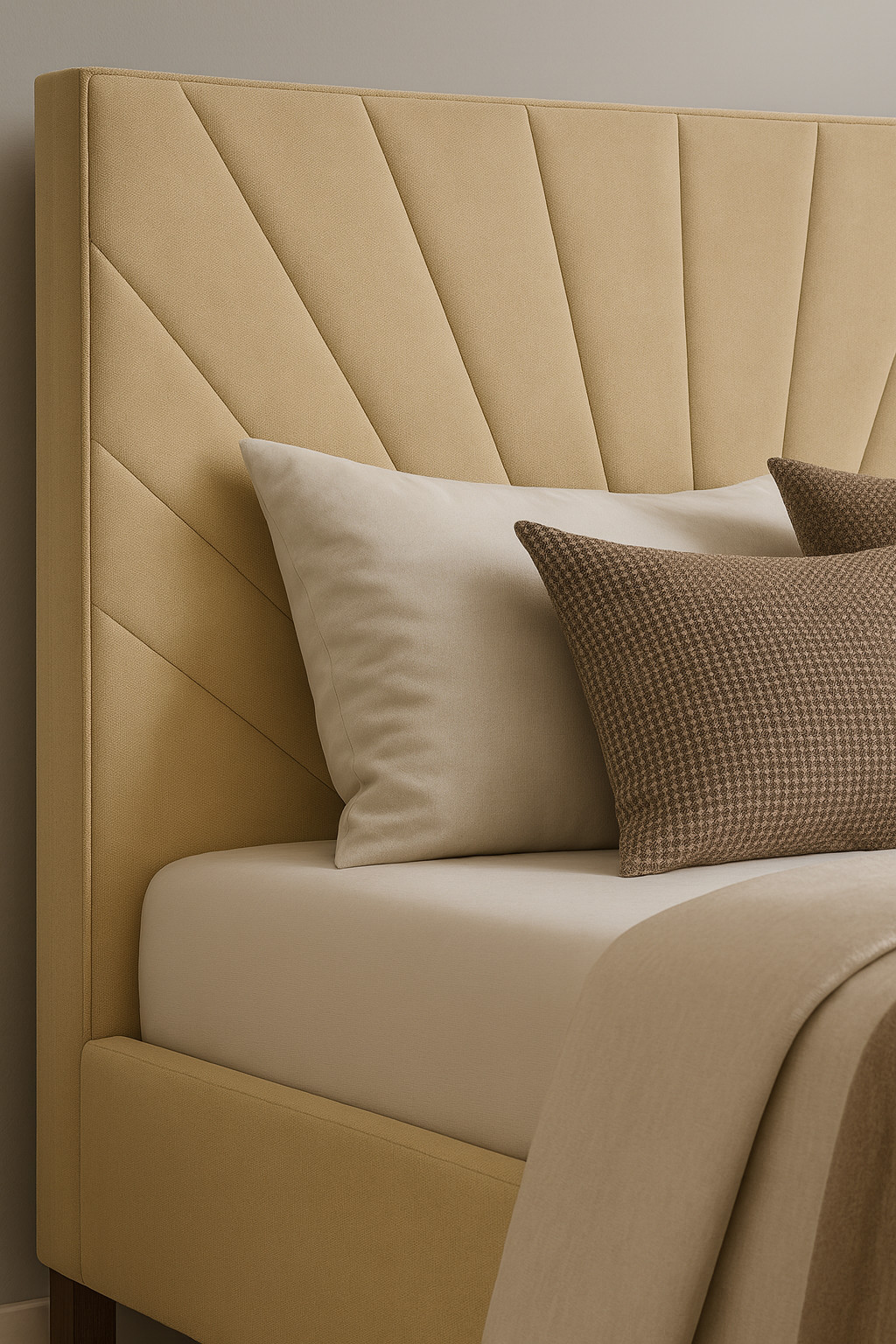 Эта кровать, выполненная из роскошного велюра с элегантной декоративной строчкой, выступающей лаконичным акцентом изголовья, представлена в трех изысканных цветах: