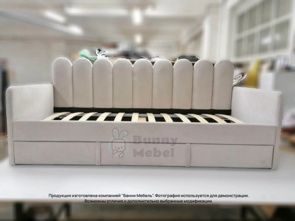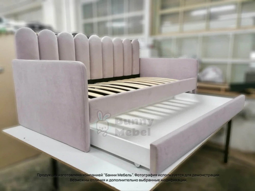 Эту модель можно доукомплектовать выкатным ящиком для игрушек или белья, дополнительным спальным местом, защитным бортиком от падения, подъемным механизмом, ортопедическим матрасом, наматрасником в цвет кровати