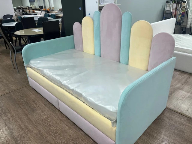 Уютная стильная кровать-софа с оригинальной спинкой и мягкими боковыми бортами