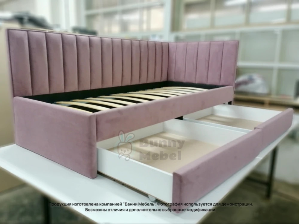 Эту модель можно доукомплектовать выкатным ящиком для игрушек или белья, дополнительным спальным местом, защитным бортиком от падения, подъемным механизмом, ортопедическим матрасом, наматрасником в цвет кровати