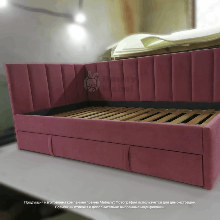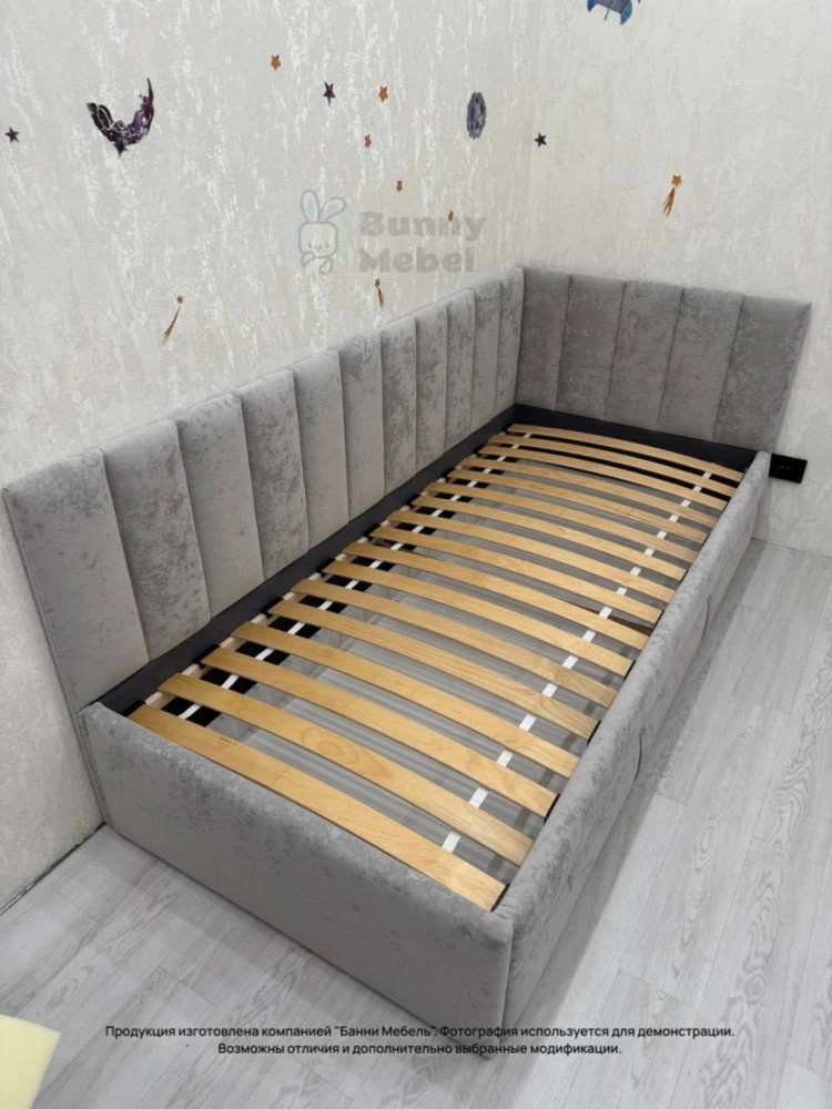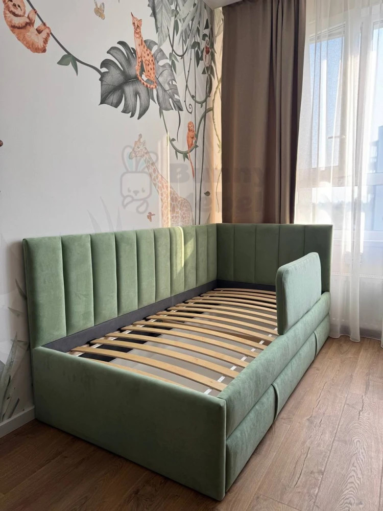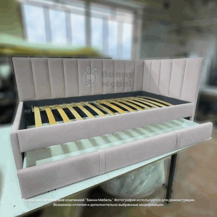Эту модель можно доукомплектовать выкатным ящиком для игрушек или белья, дополнительным спальным местом, защитным бортиком от падения, подъемным механизмом, ортопедическим матрасом, наматрасником в цвет кровати