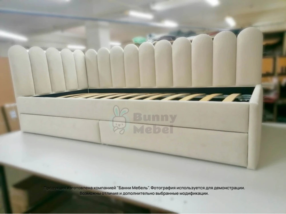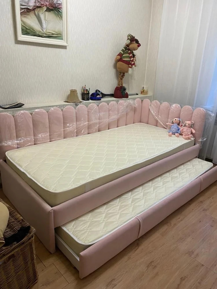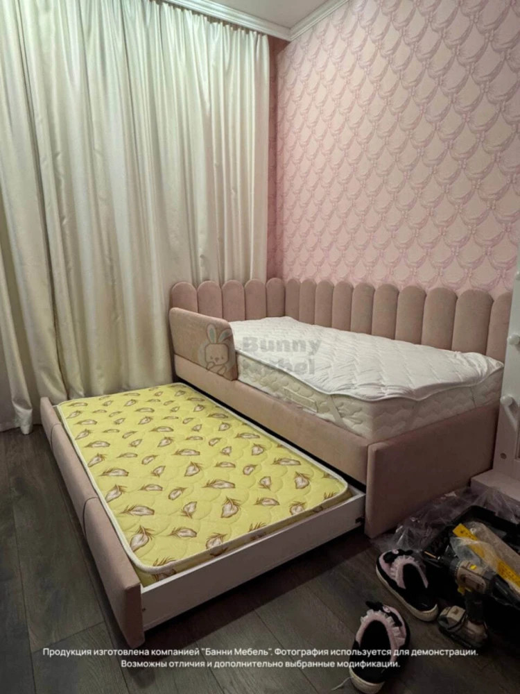 Эту модель можно доукомплектовать выкатным ящиком для игрушек или белья, дополнительным спальным местом, защитным бортиком от падения, подъемным механизмом, ортопедическим матрасом, наматрасником в цвет кровати