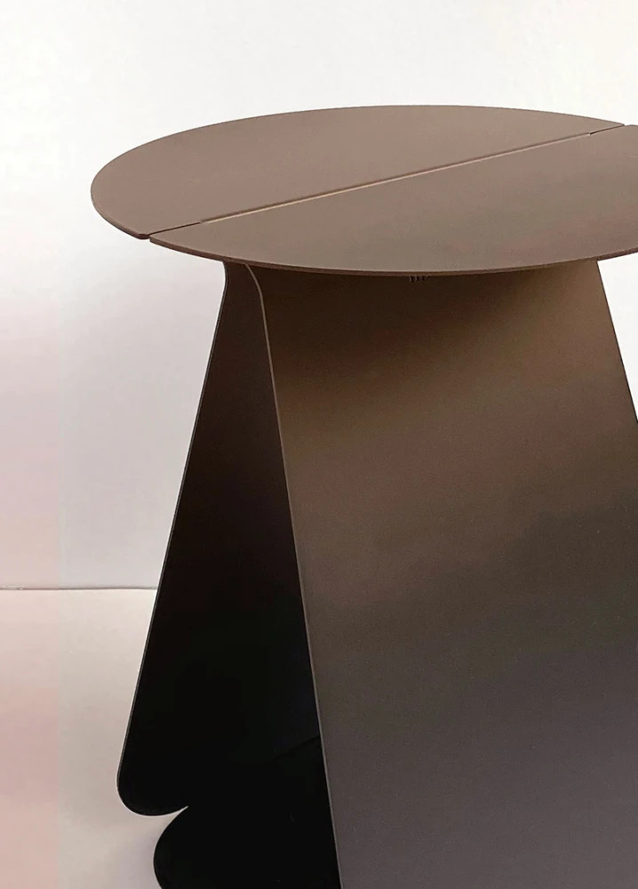 Минималистичный металлический столик, состоящий из двух симметричных частей. Элементы соединяются в аккуратный круглый силуэт, а при необходимости легко разбираются. Идеально подходит как для интерьера, так и в качестве акцентной детали на террасе.