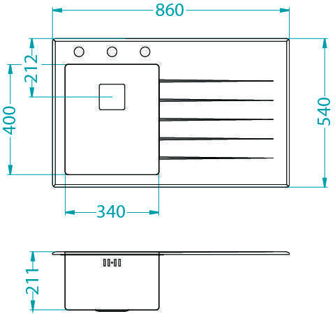 Мойка врезная. Материал Стекло Тип монтажа Над столешницей Форма мойки Одна чаша с крылом Размер мойки 860 х 540 мм Глубина чаши, мм 200 Ширина шкафа, см 40