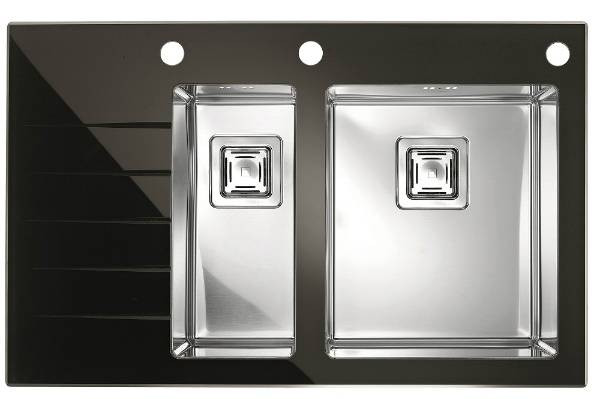 Мойка врезная. Материал Стекло Тип монтажа Над столешницей Форма мойки Одна основная чаша + одна дополнительная с крылом Размер мойки 860 х 540 мм Глубина чаши, мм 200 Ширина шкафа, см 80
