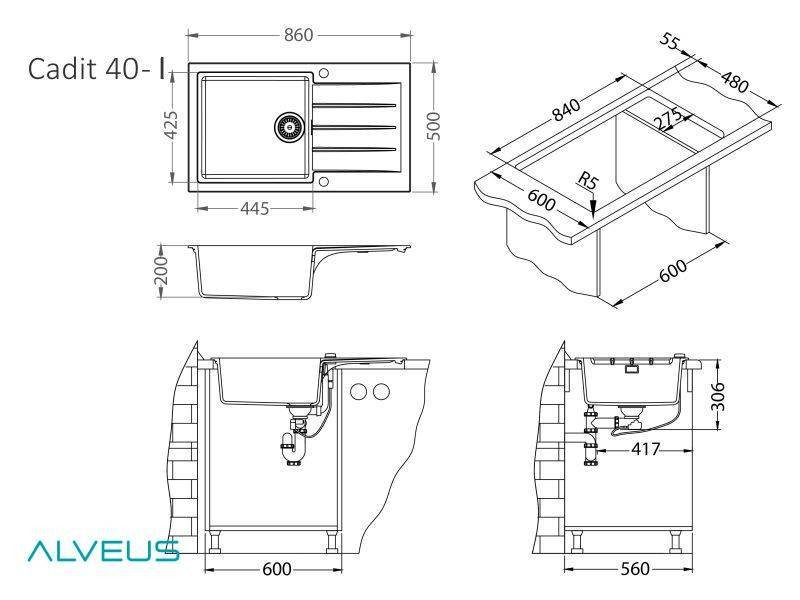 Размер мойки : 860х500