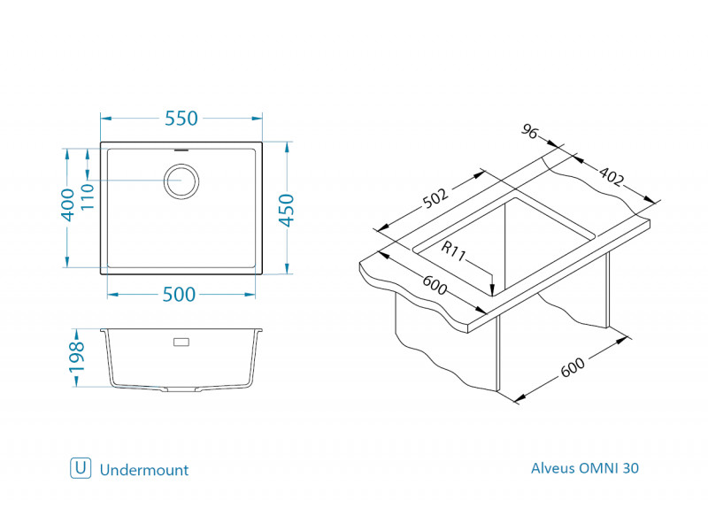 Типы установки: Классические врезные кухонные мойки (I) / Чаши для монтажа под столешницу (U)
