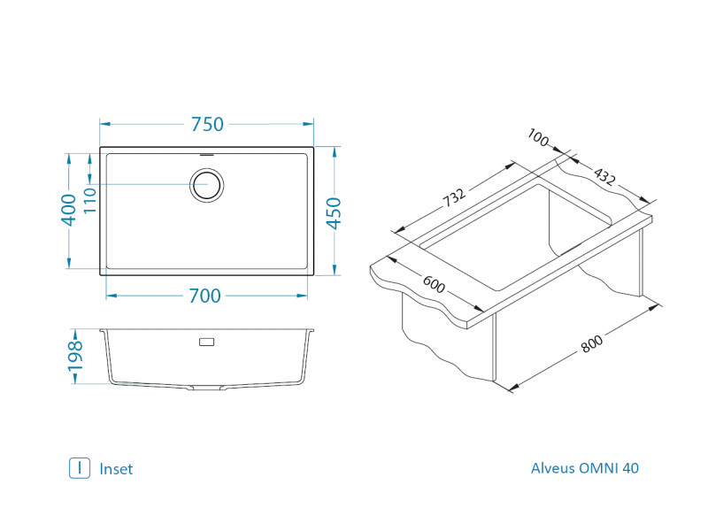 Типы установки: Классические врезные кухонные мойки (I) / Чаши для монтажа под столешницу (U)