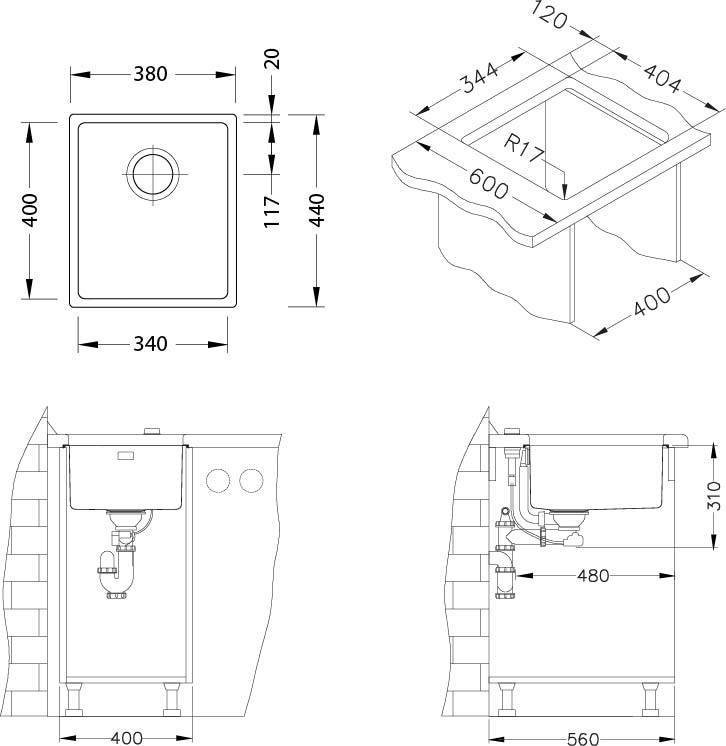 Кухонная мойка, установка под столешницу