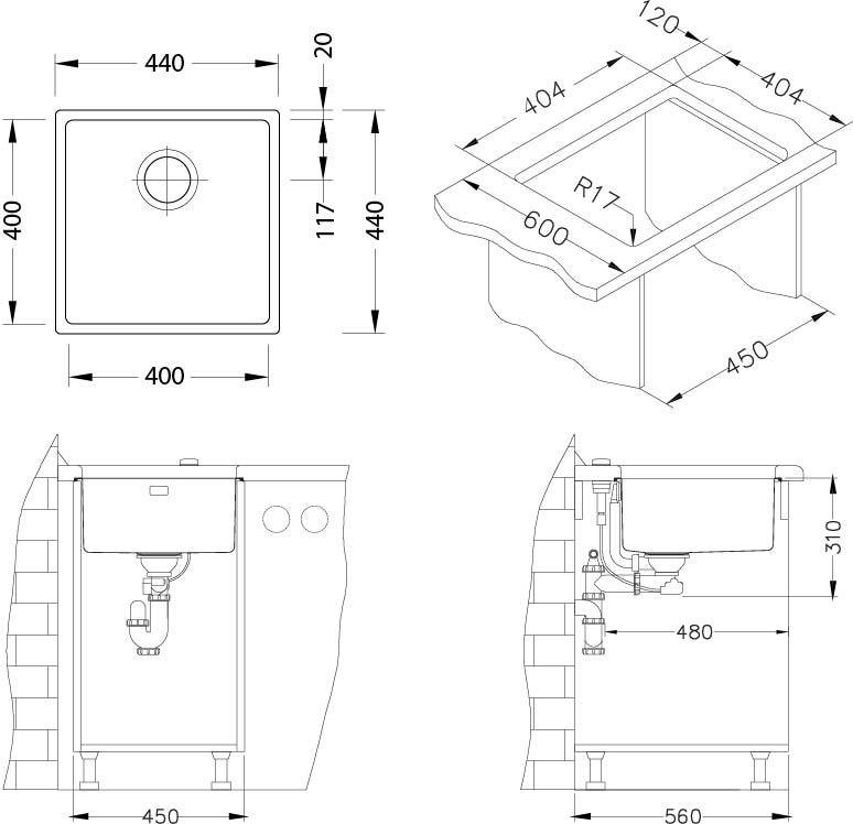 Кухонная мойка, установка под столешницу