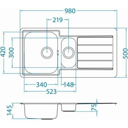 Размер мойки 980 х 500 мм.