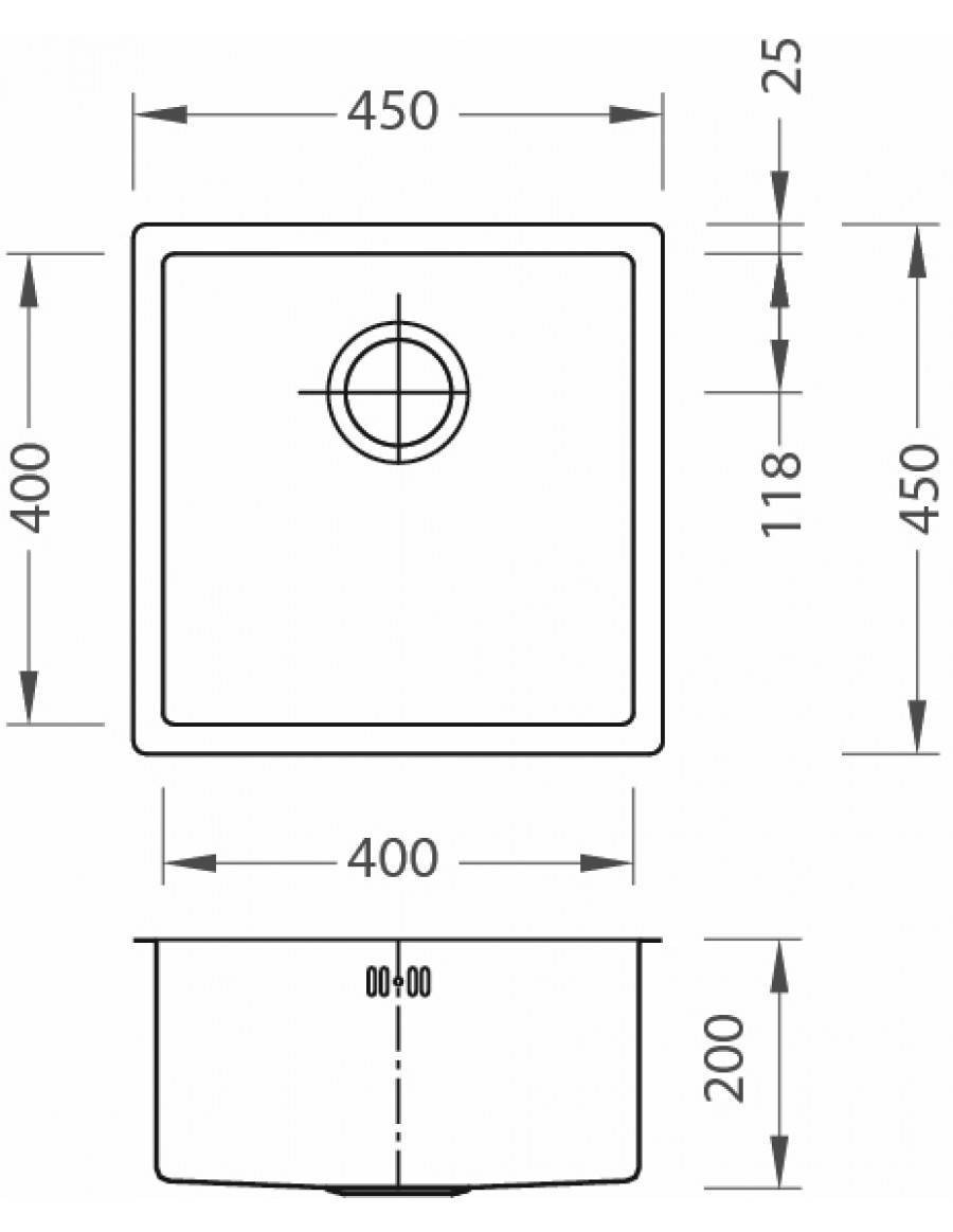 Мойка Материал Сталь с PVD-покрытием Тип монтажа В один уровень Форма мойки Одна чаша Количество чаш 1 Размер мойки 450х400 мм Глубина чаши, мм 200