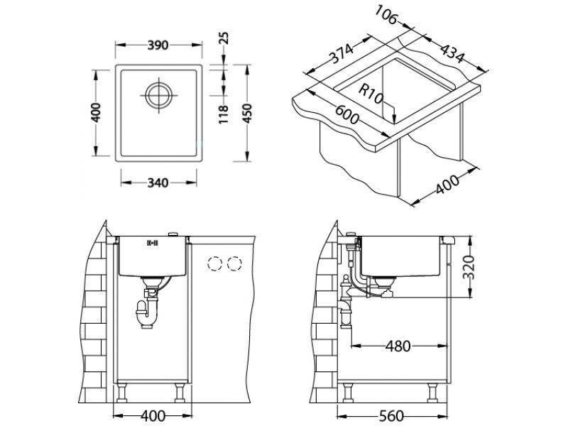 Размер мойки: 39x45