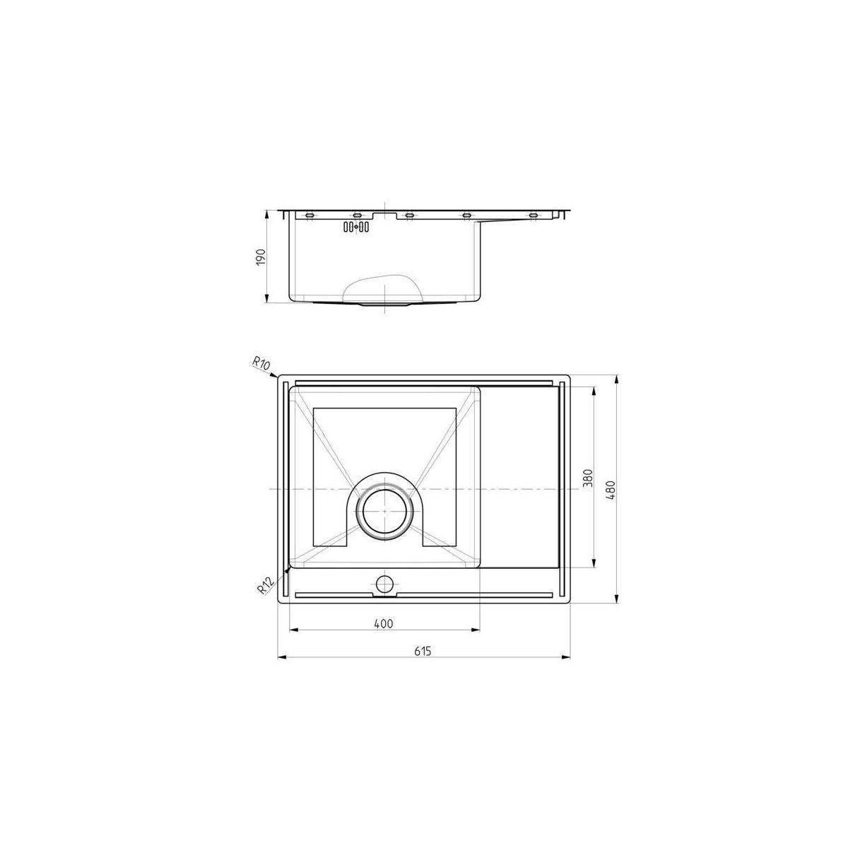 Внутренний радиус закругления углов чаши - 12 мм, что придает мойке современный вид.