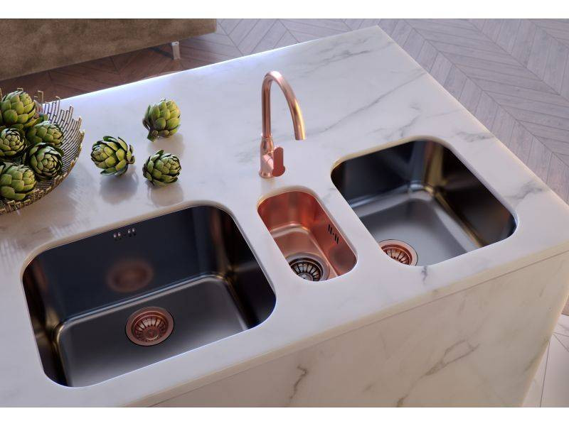Поверхностно обработанная нержавеющая сталь доступна в четырех драгоценных металлические оттенках: GOLD, BRONZE, COOPER, ANTHRACITE. Из-за особенностей процесса обработки поверхности каждая раковина обладает уникальным цветовым оттенком.