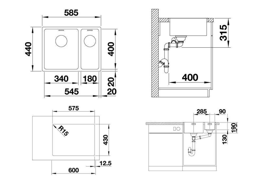 Кухонная мойка BLANCO ANDANO 340/180-IF нерж.сталь зеркальная полировка левая