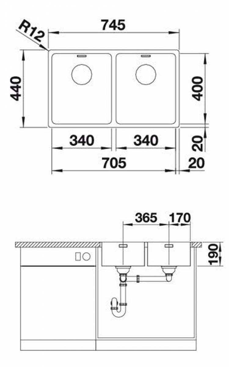 Кухонная мойка BLANCO ANDANO 340/340-U нерж.сталь полированная без клапана-автомата