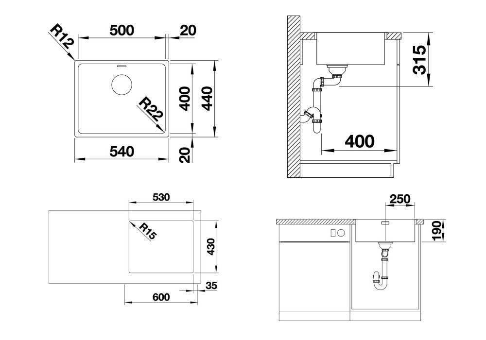 Края мойки слегка скруглены для лучшей эргономики, а полировка придает современный вид.