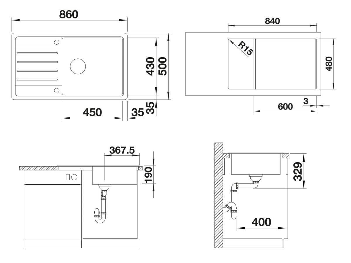 Длина мойки: 86 см