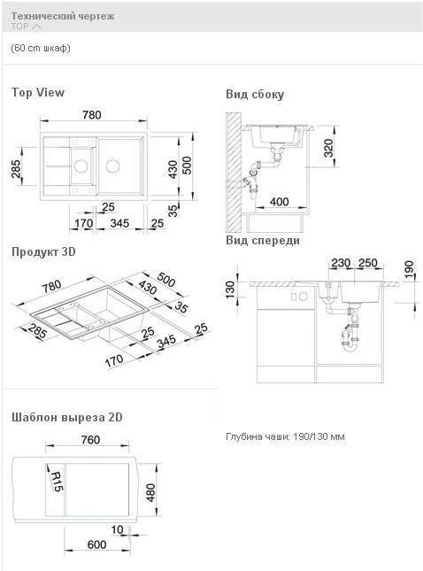 Глубина чаши 190/130 мм.